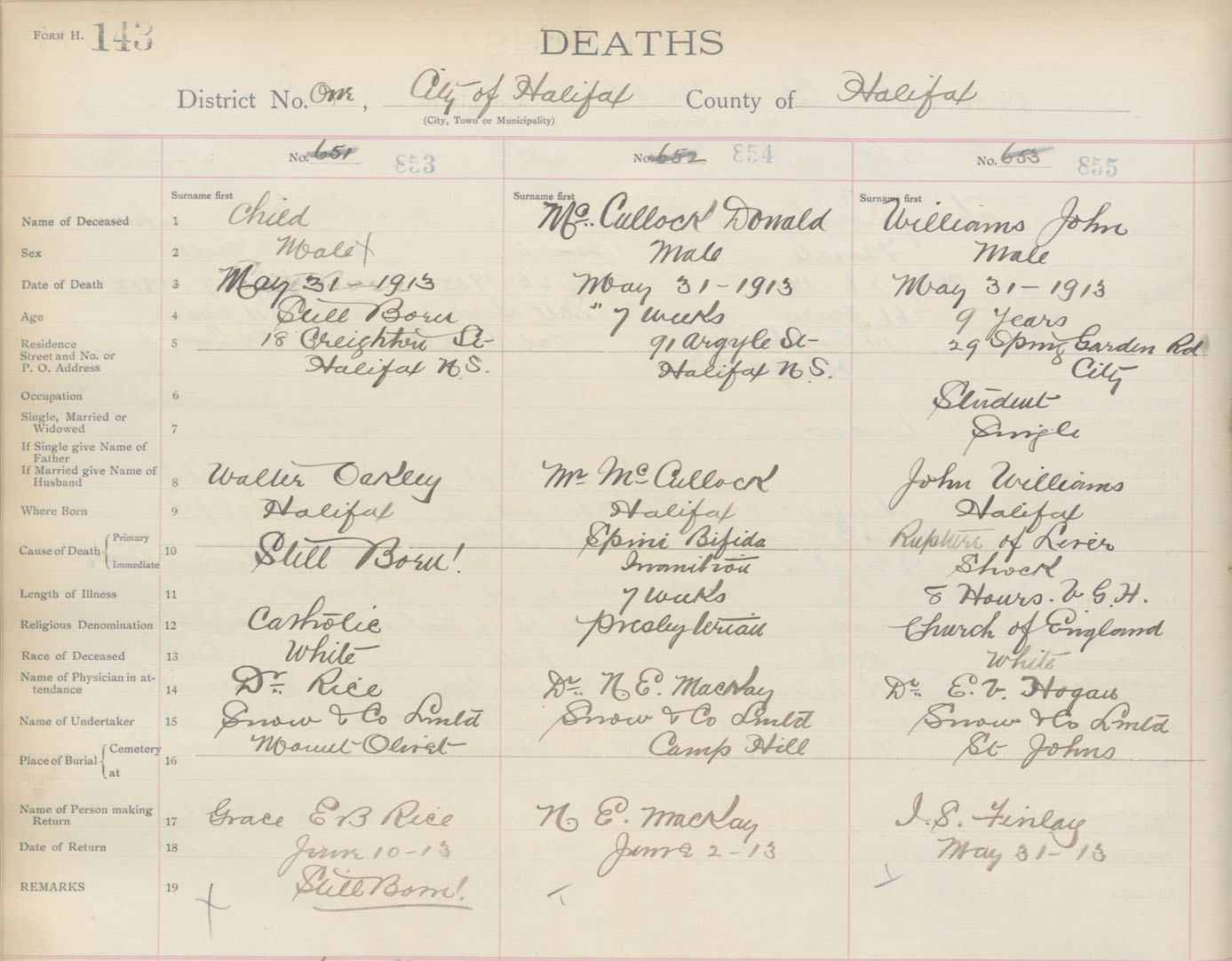 Death Registration: Year: 1913 book: 20 page: 143 number: 855