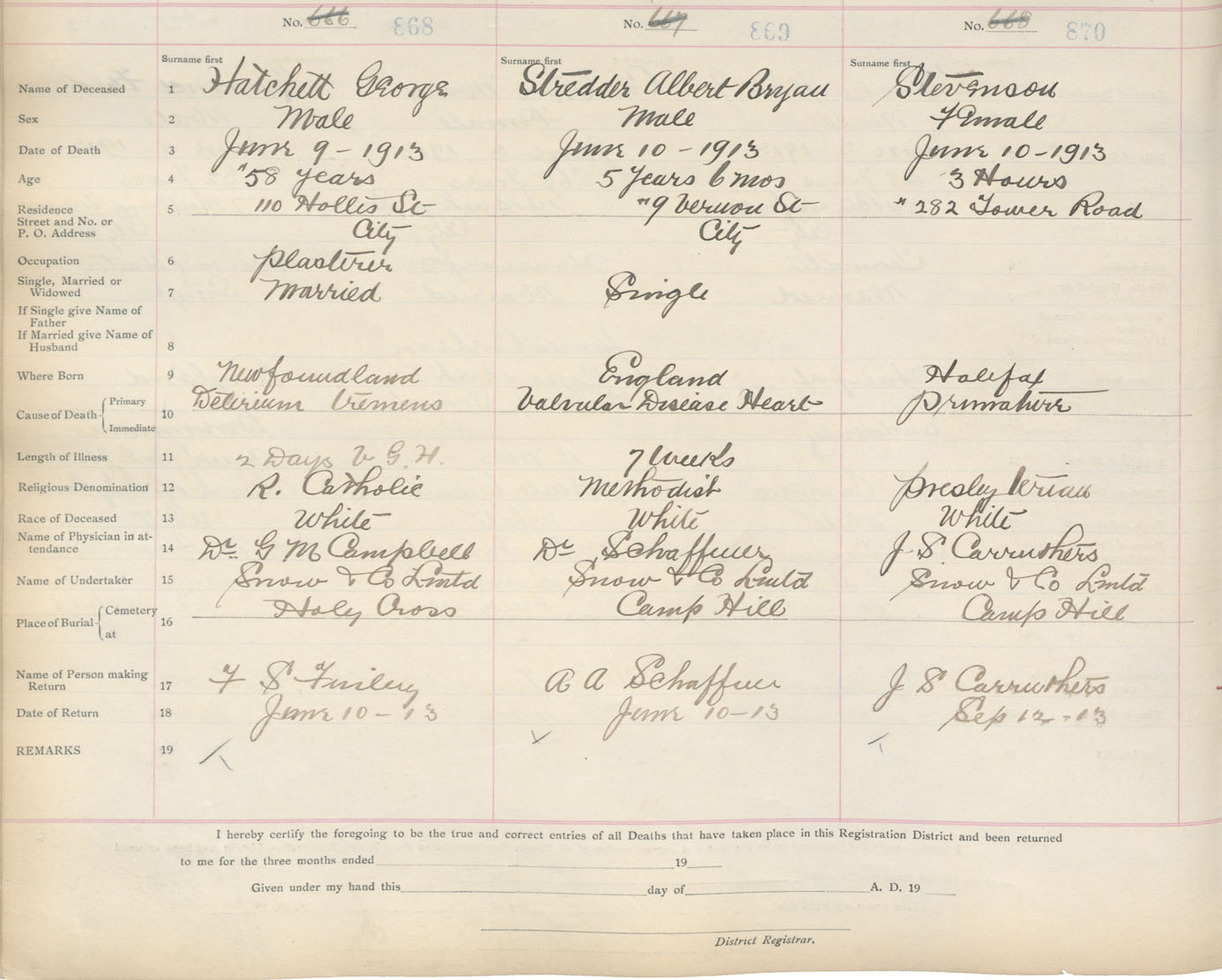 Death Registration: Year: 1913 book: 20 page: 145 number: 870