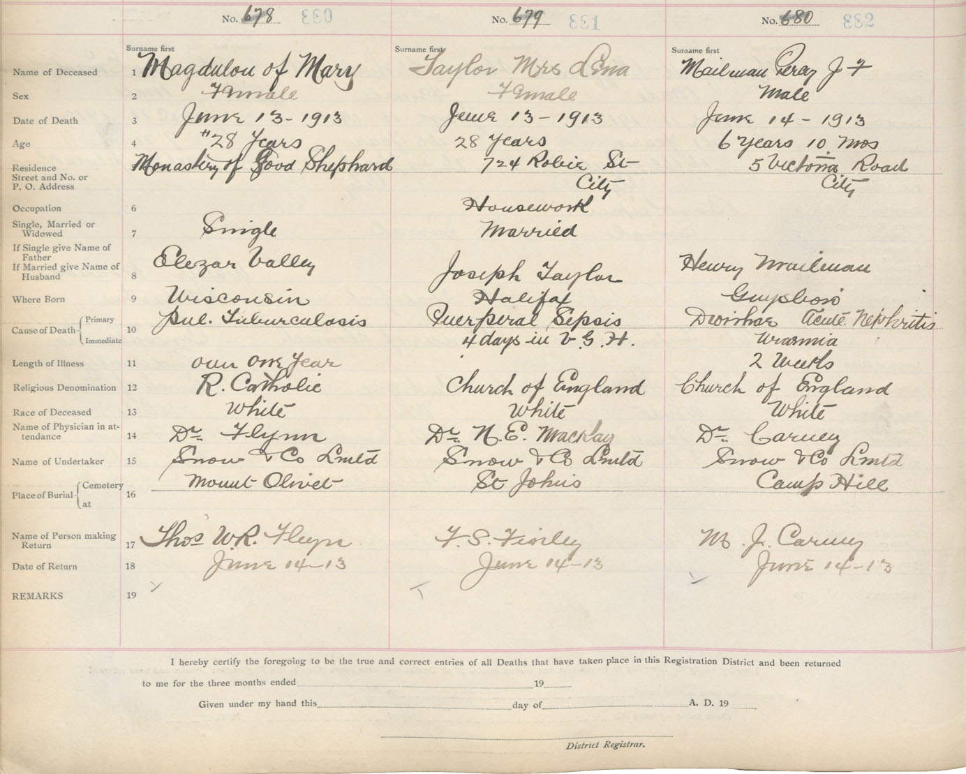 Death Registration: Year: 1913 book: 20 page: 147 number: 882