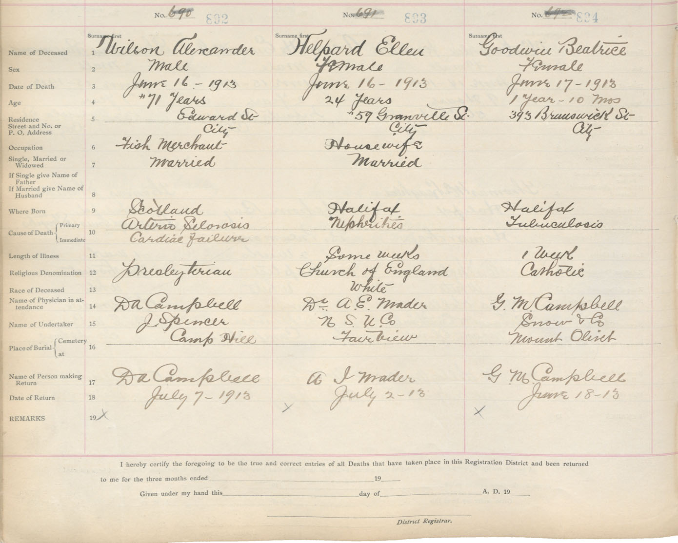 Death Registration: Year: 1913 book: 20 page: 149 number: 894
