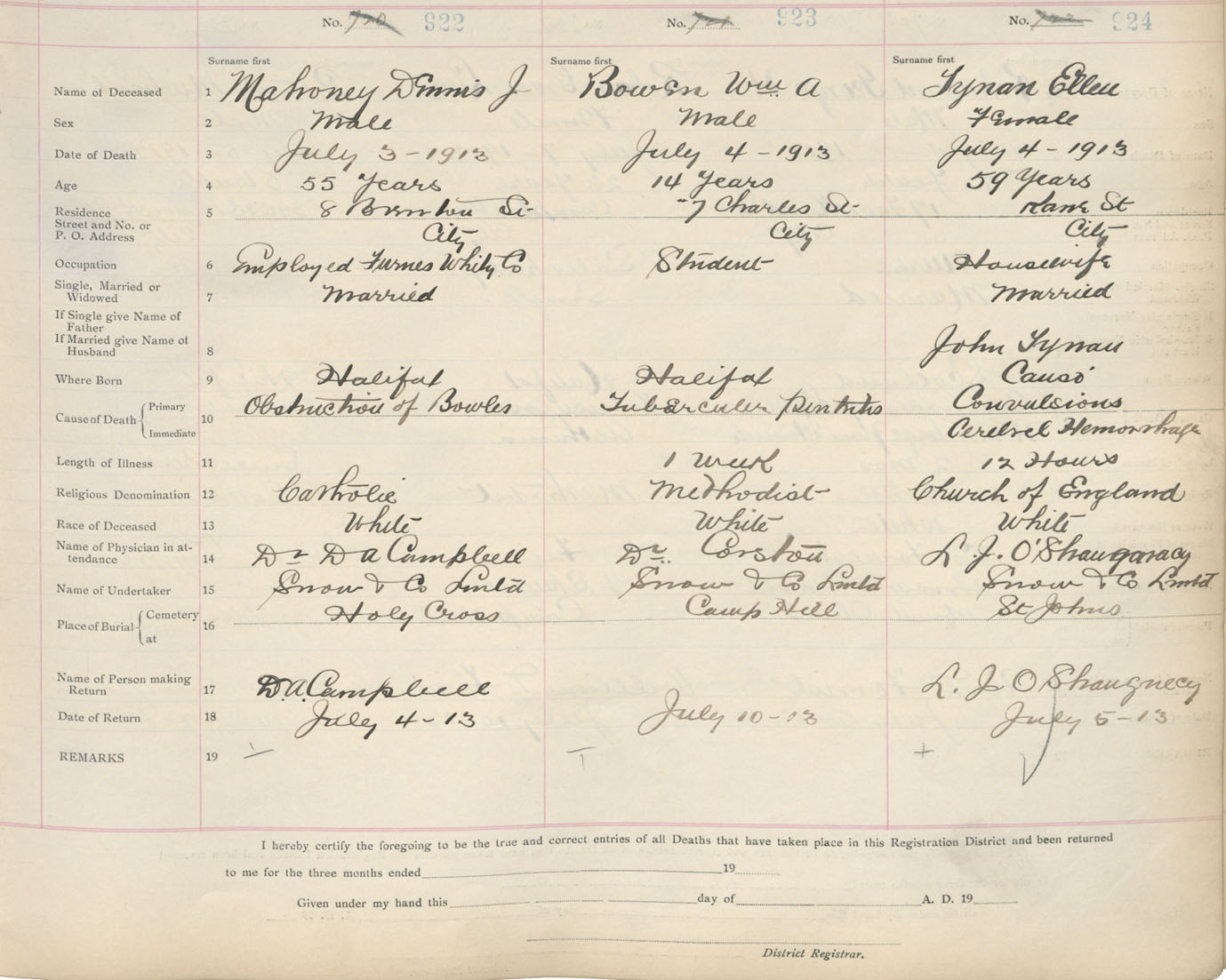 Death Registration: Year: 1913 book: 20 page: 154 number: 924
