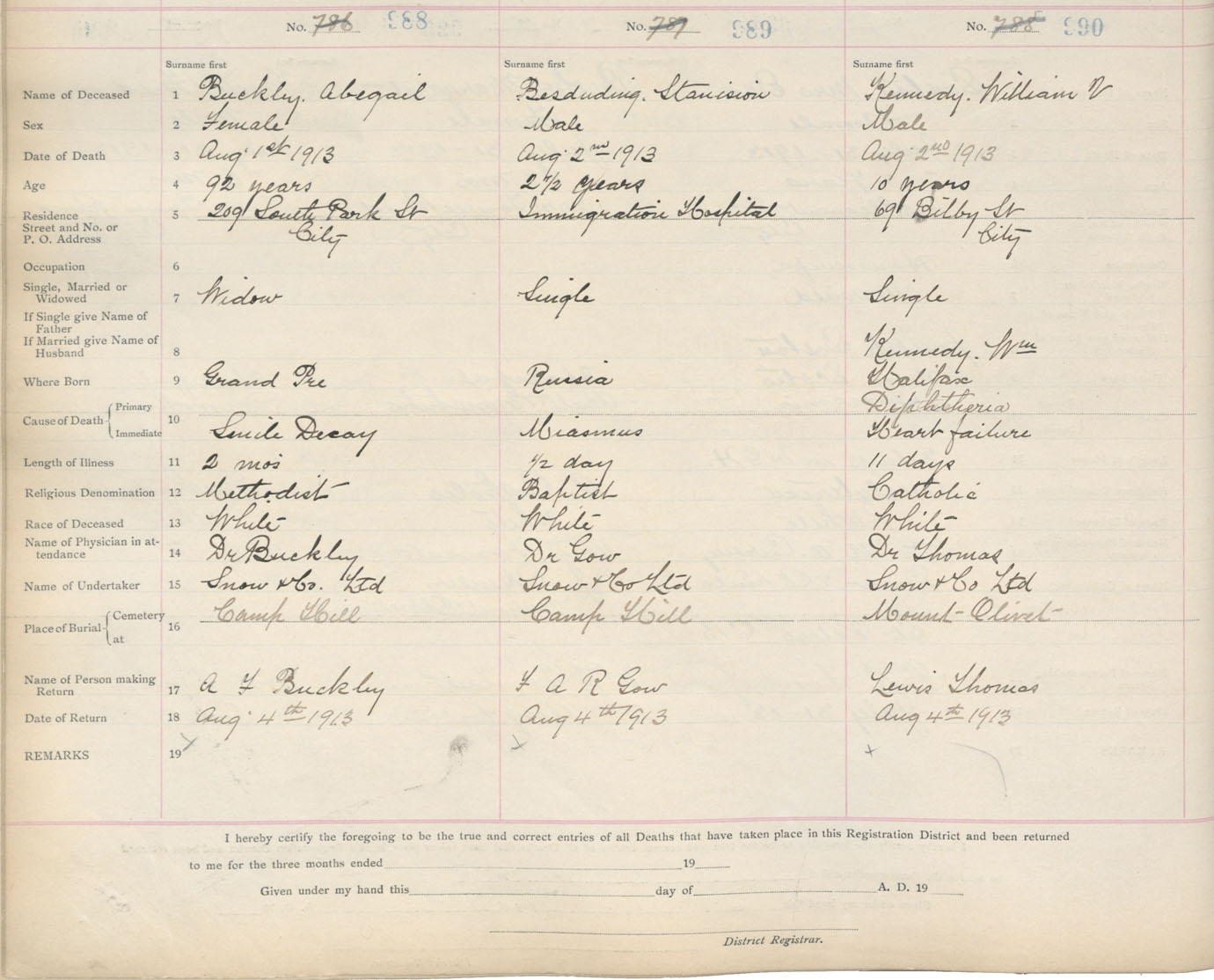 Death Registration: Year: 1913 book: 20 page: 165 number: 990