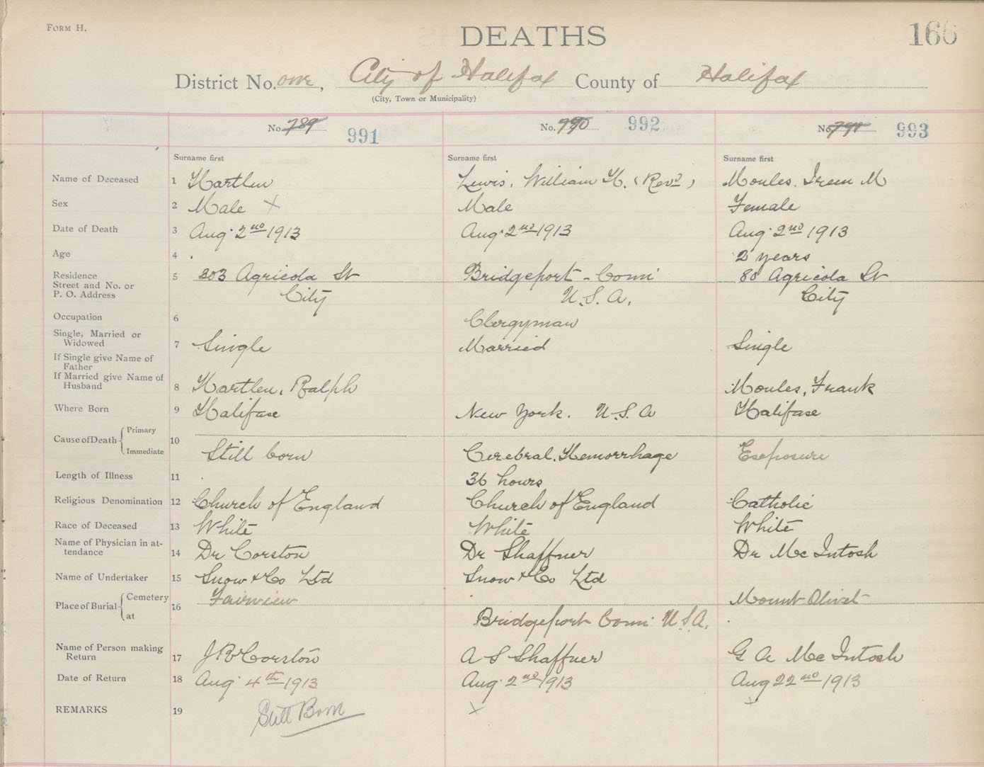 Death Registration: Year: 1913 book: 20 page: 166 number: 993