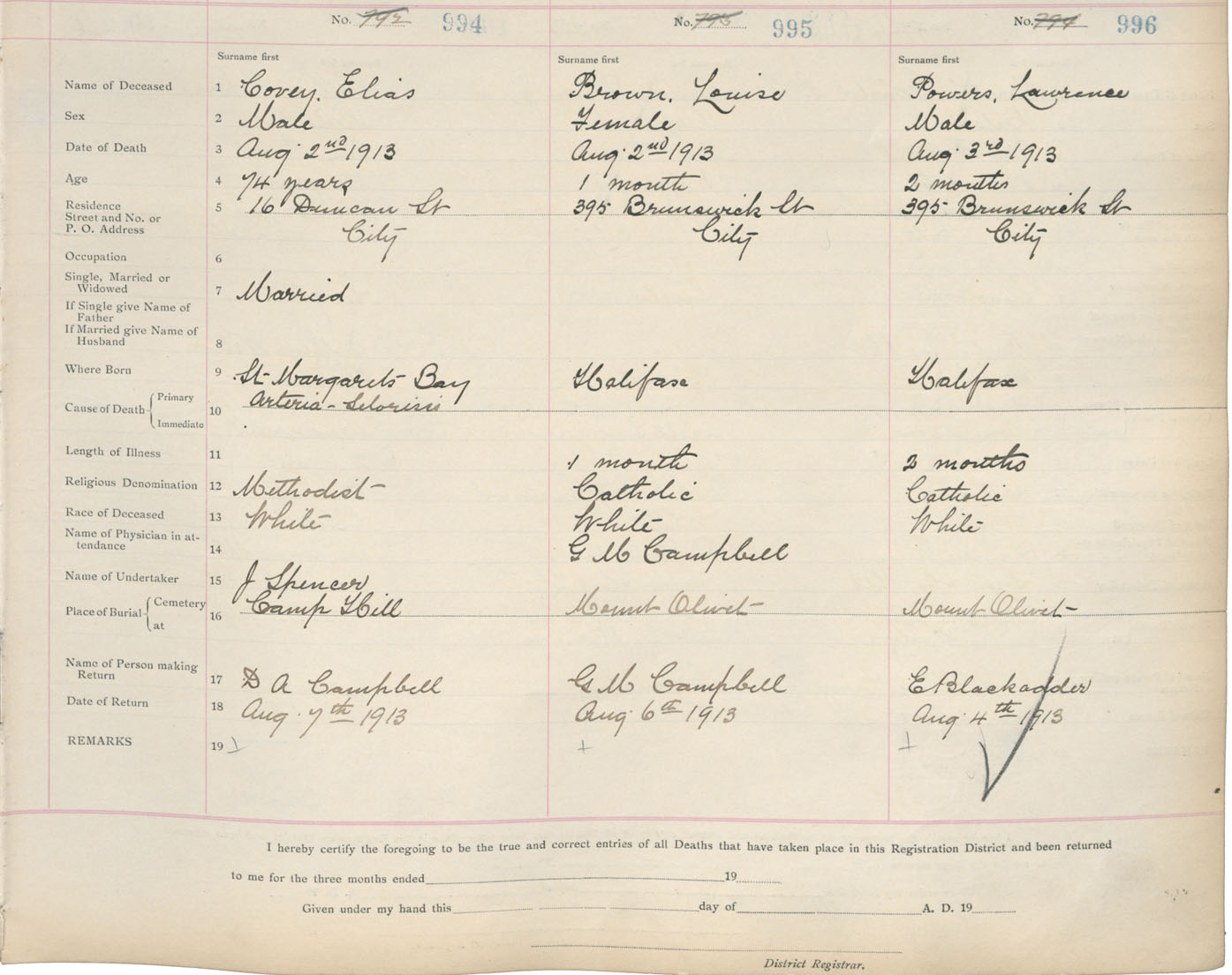Death Registration: Year: 1913 book: 20 page: 166 number: 996