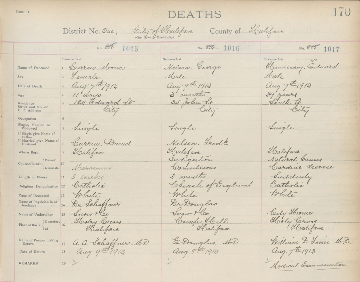 Death Registration: Year: 1913 book: 20 page: 170 number: 1017