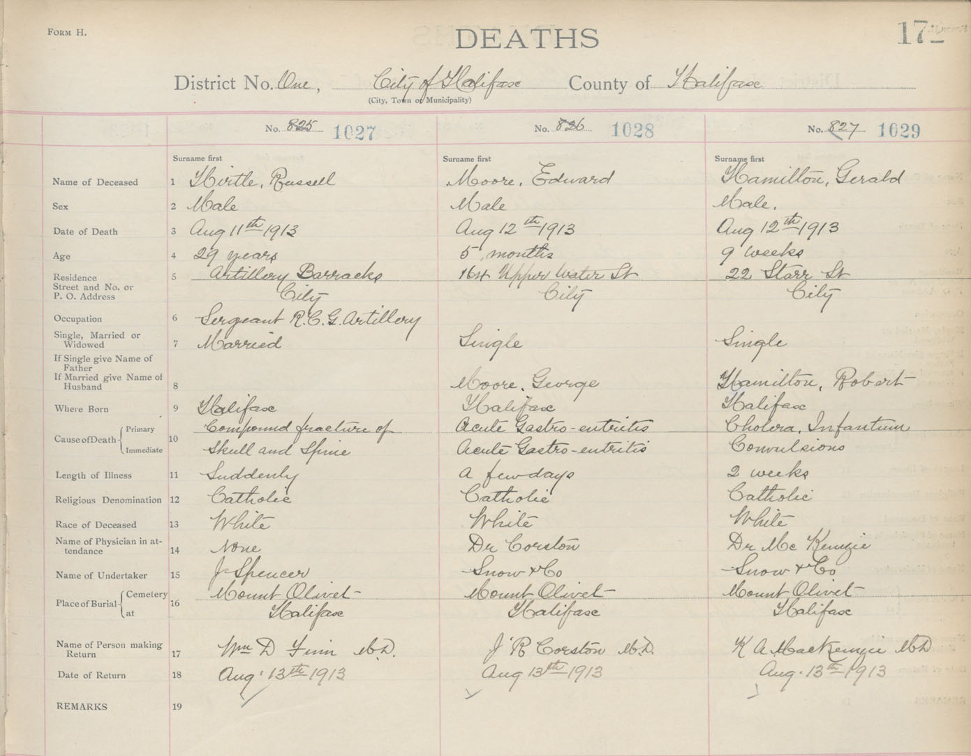 Death Registration: Year: 1913 book: 20 page: 172 number: 1029