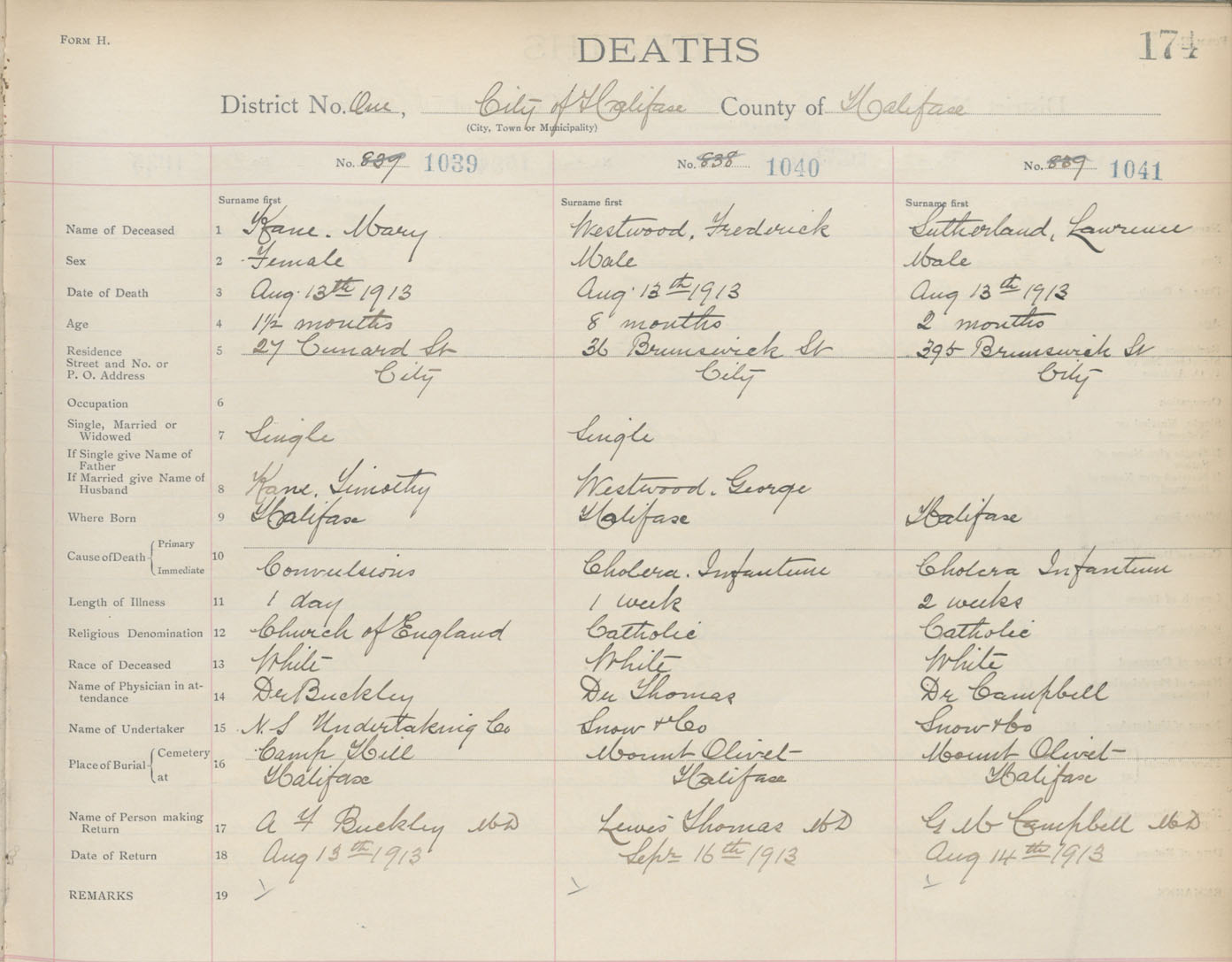 Death Registration: Year: 1913 book: 20 page: 174 number: 1041
