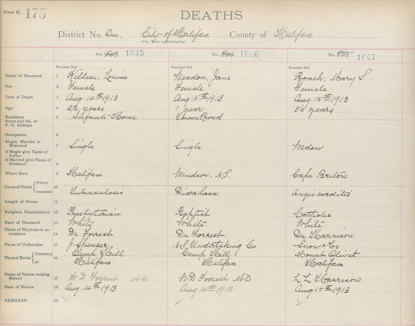 Death Registration: Year: 1913 book: 20 page: 175 number: 1047