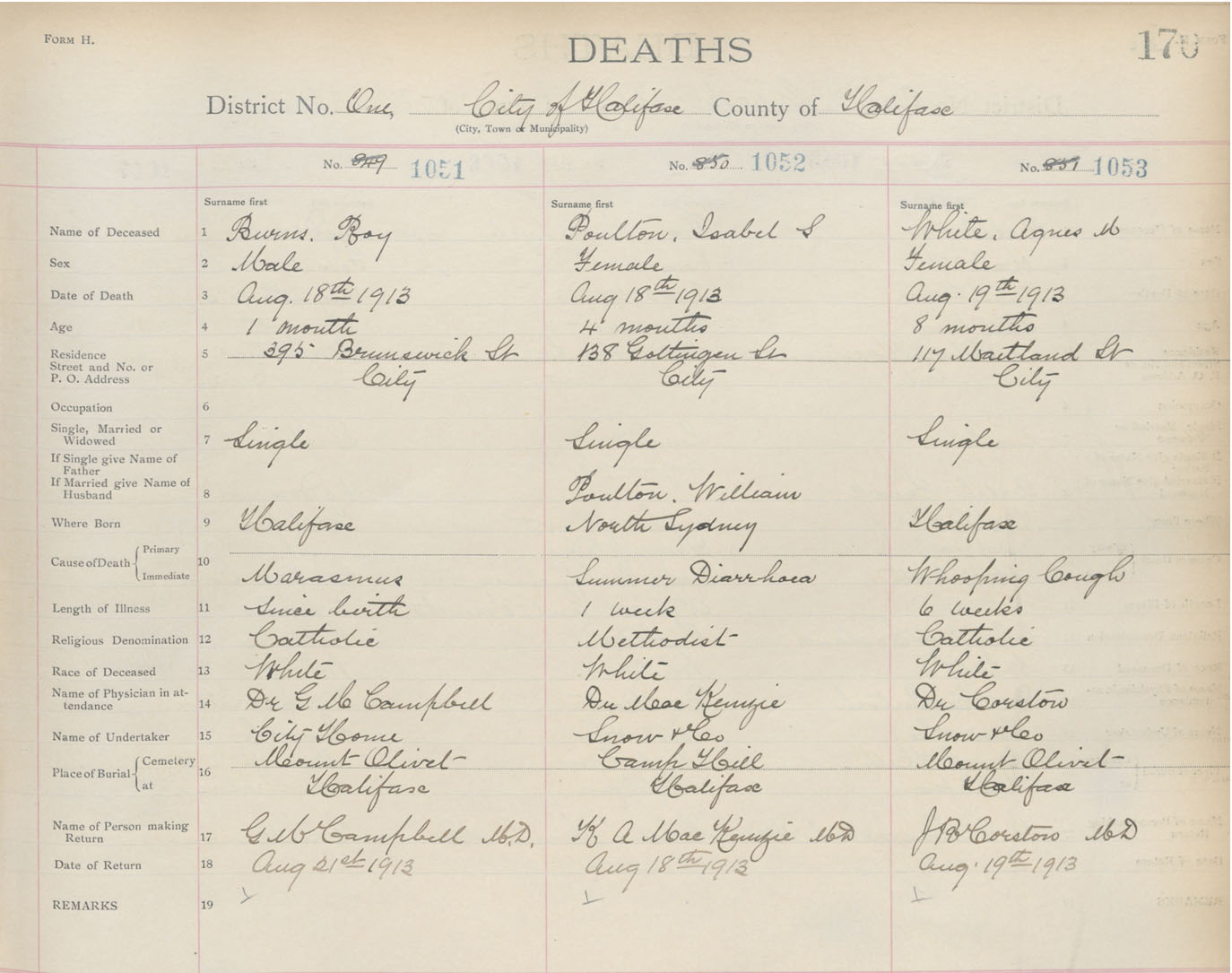 Death Registration: Year: 1913 book: 20 page: 176 number: 1053