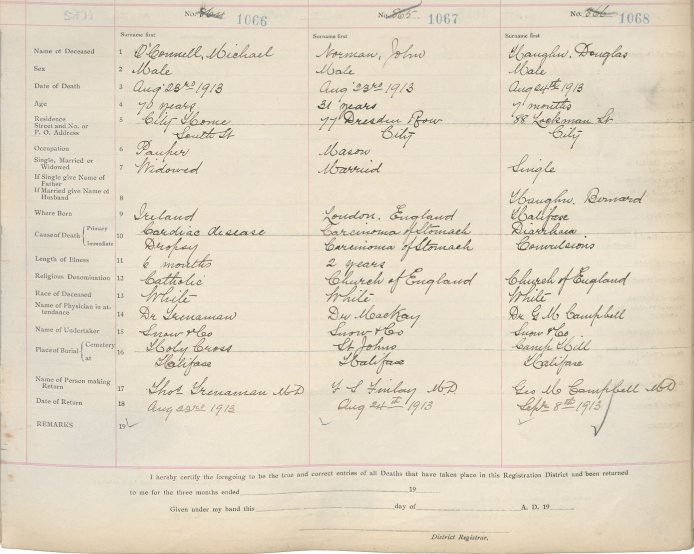 Death Registration: Year: 1913 book: 20 page: 178 number: 1068