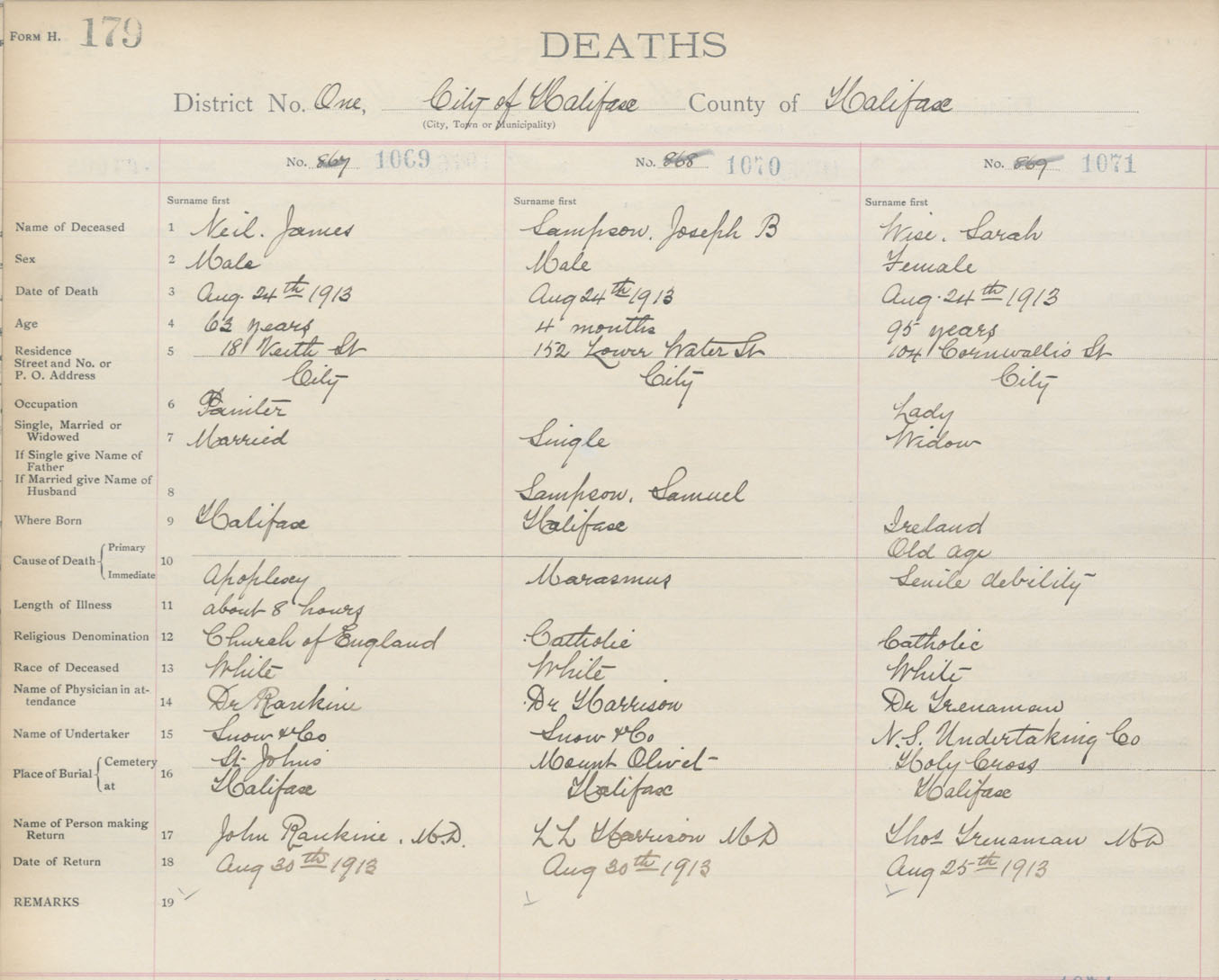 Death Registration: Year: 1913 book: 20 page: 179 number: 1071