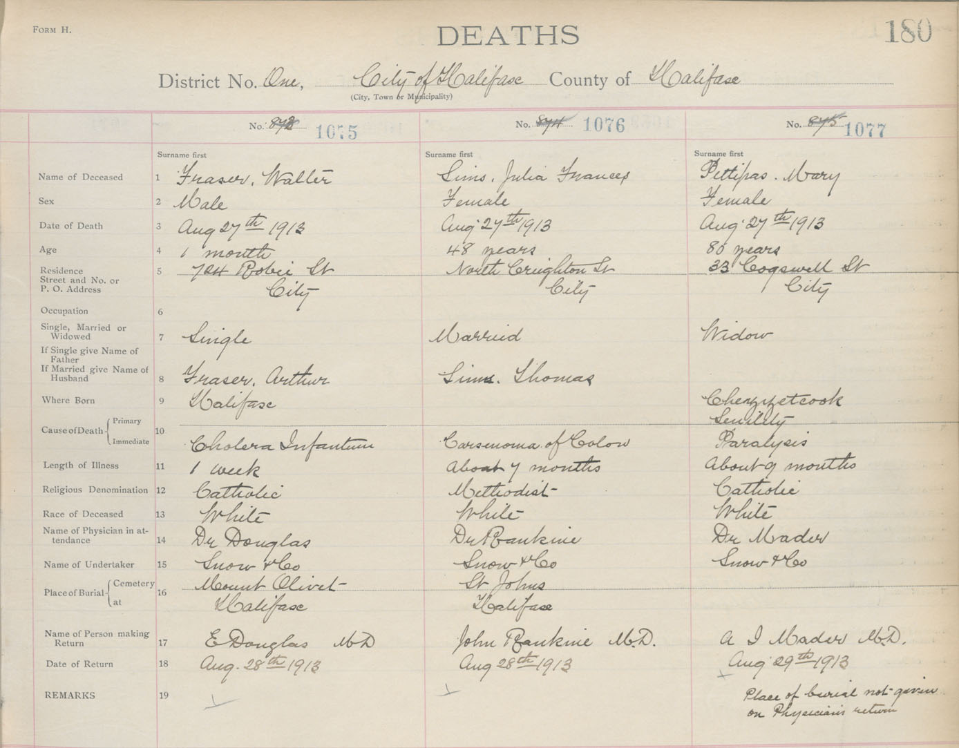 Death Registration: Year: 1913 book: 20 page: 180 number: 1077