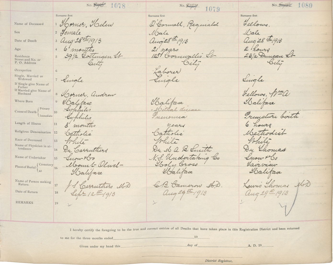 Death Registration: Year: 1913 book: 20 page: 180 number: 1080