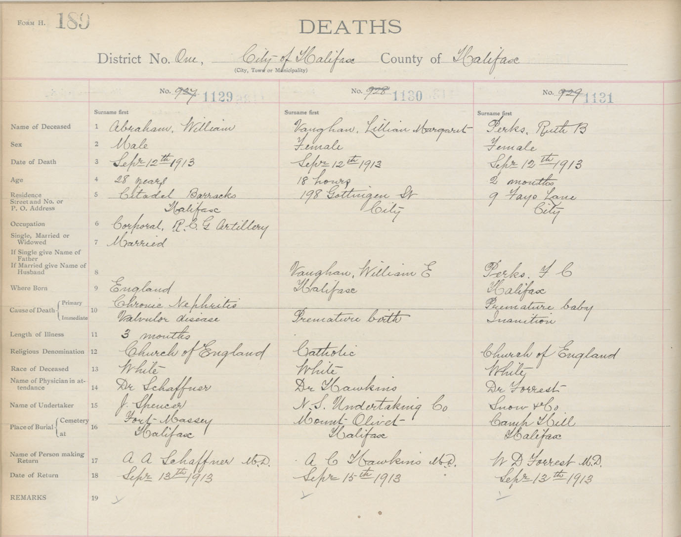 Death Registration: Year: 1913 book: 20 page: 189 number: 1131