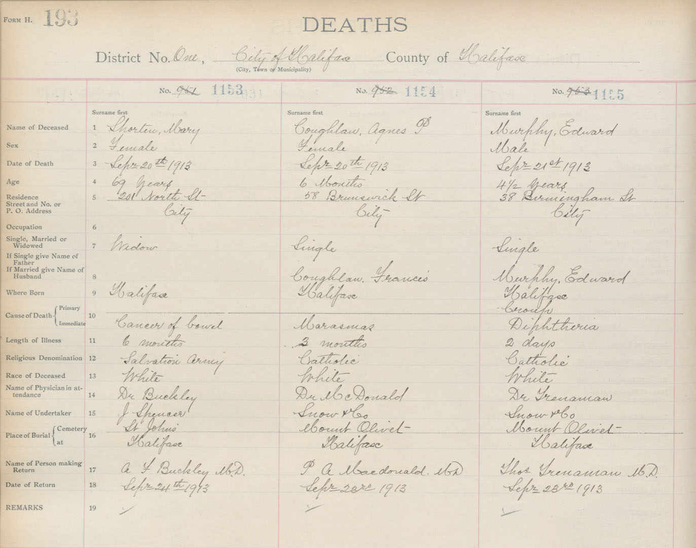 Death Registration: Year: 1913 book: 20 page: 193 number: 1155