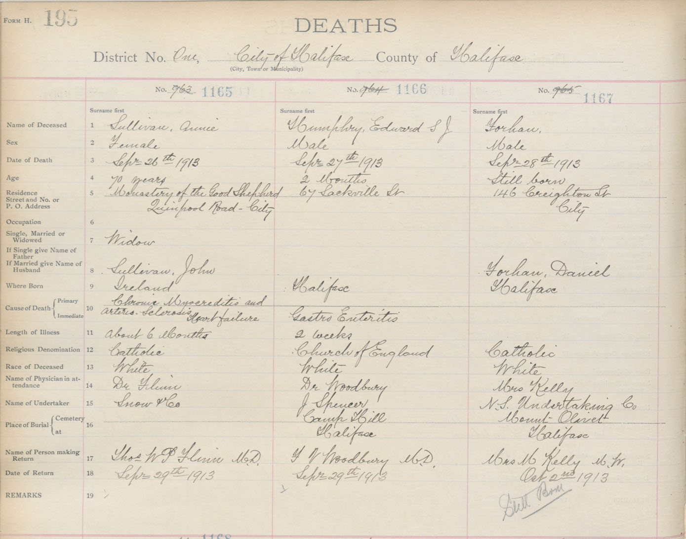 Death Registration: Year: 1913 book: 20 page: 195 number: 1167