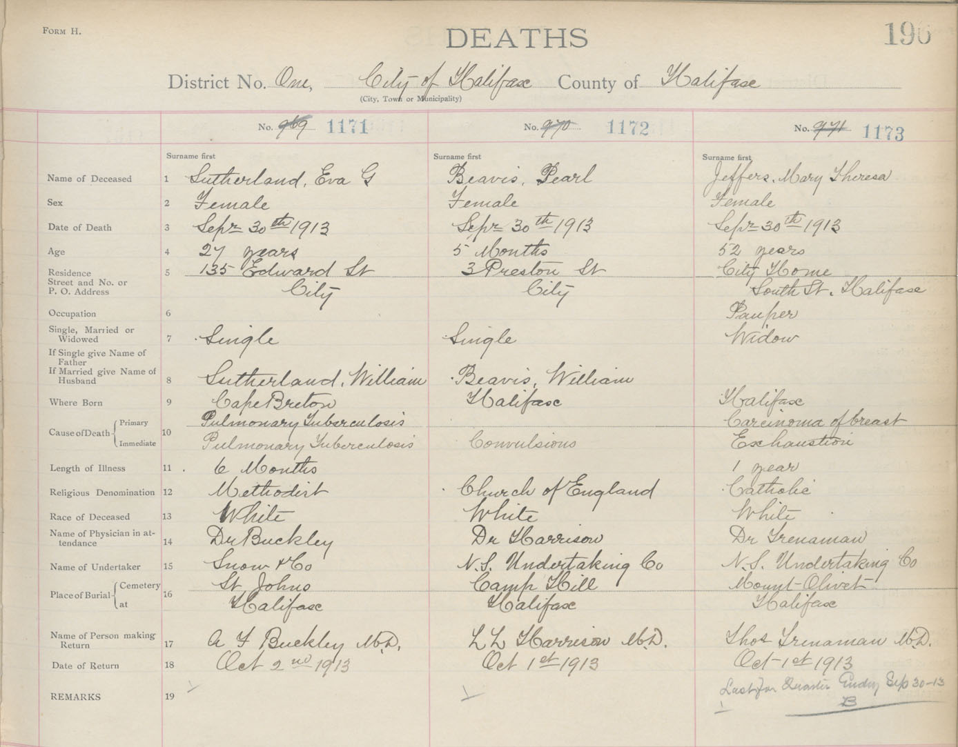 Death Registration: Year: 1913 book: 20 page: 196 number: 1173