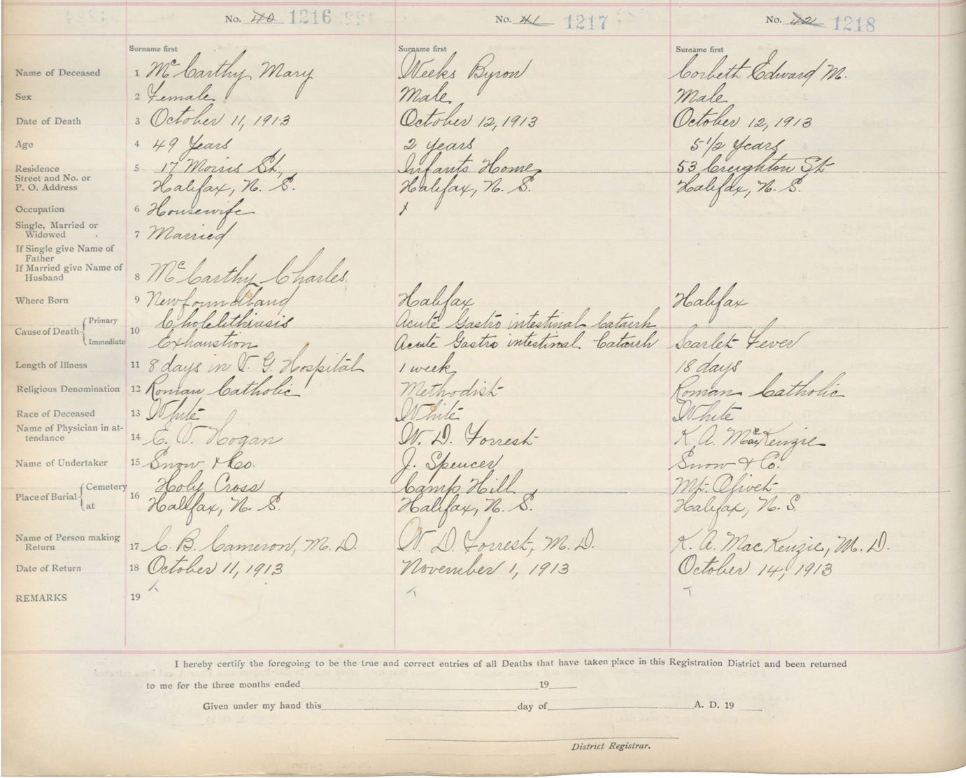 Death Registration: Year: 1913 book: 20 page: 203 number: 1218
