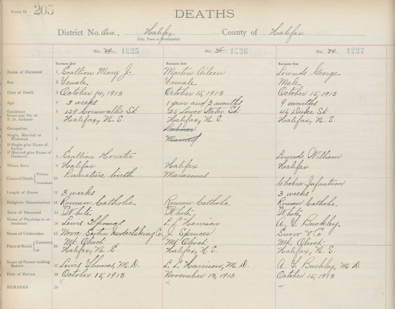 Death Registration: Year: 1913 book: 20 page: 205 number: 1227