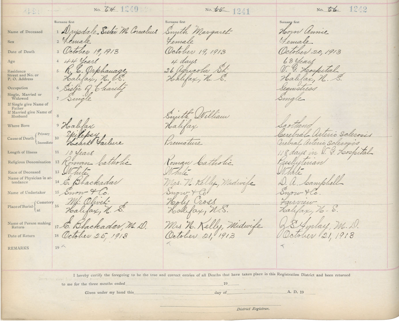 Death Registration: Year: 1913 book: 20 page: 207 number: 1242