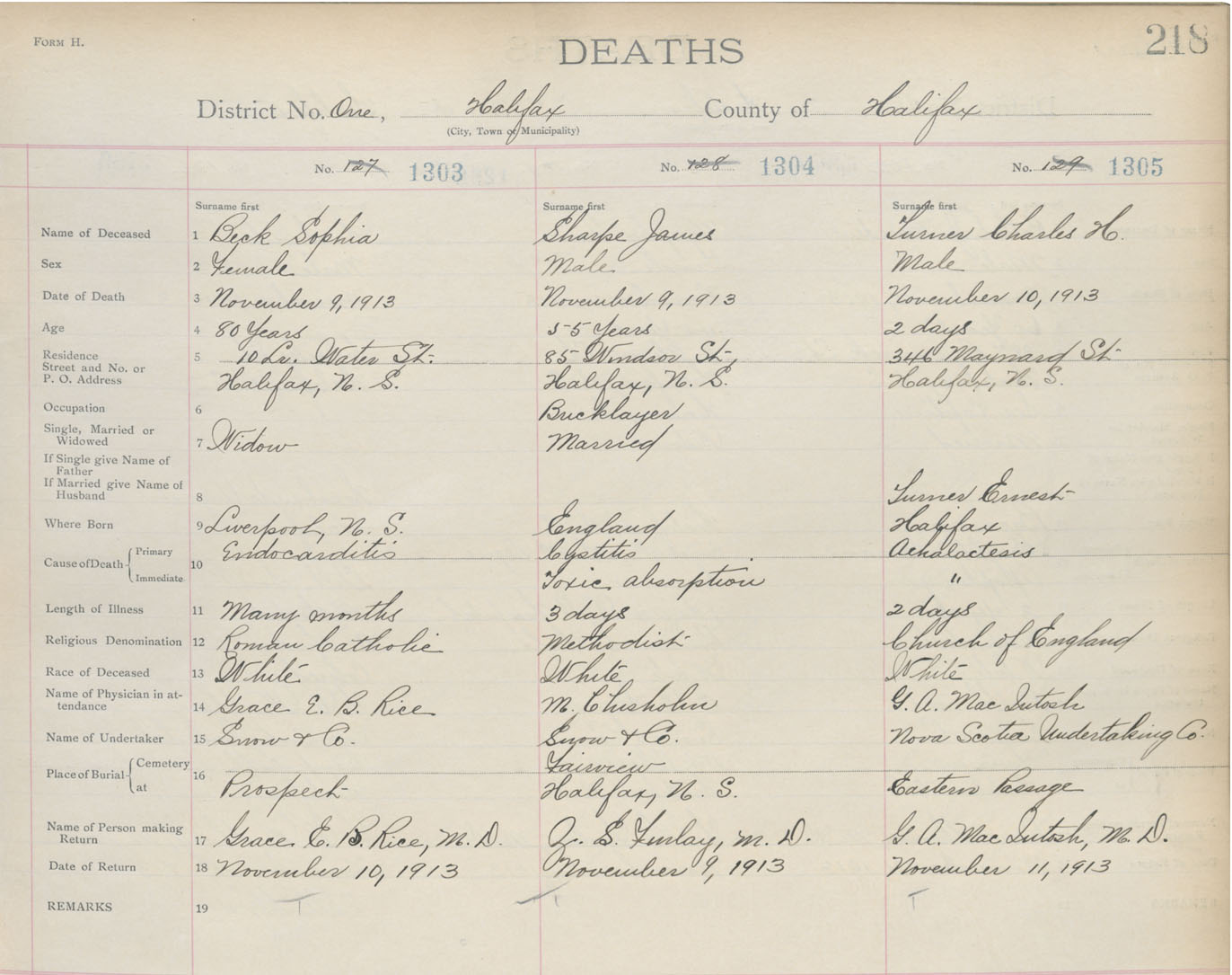 Death Registration: Year: 1913 book: 20 page: 218 number: 1305