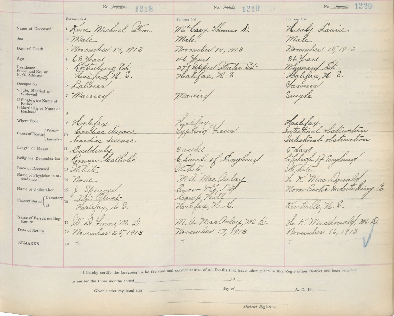 Death Registration: Year: 1913 book: 20 page: 220 number: 1320