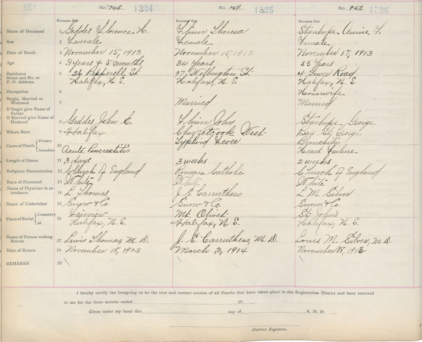 Death Registration: Year: 1913 book: 20 page: 221 number: 1326