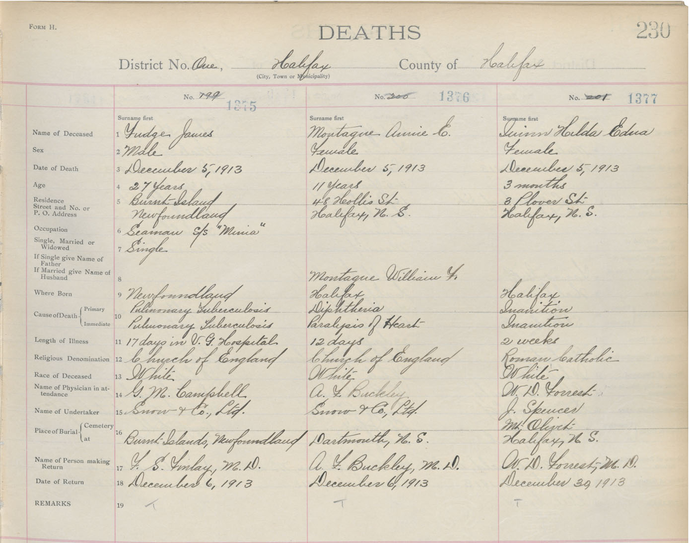 Death Registration: Year: 1913 book: 20 page: 230 number: 1377