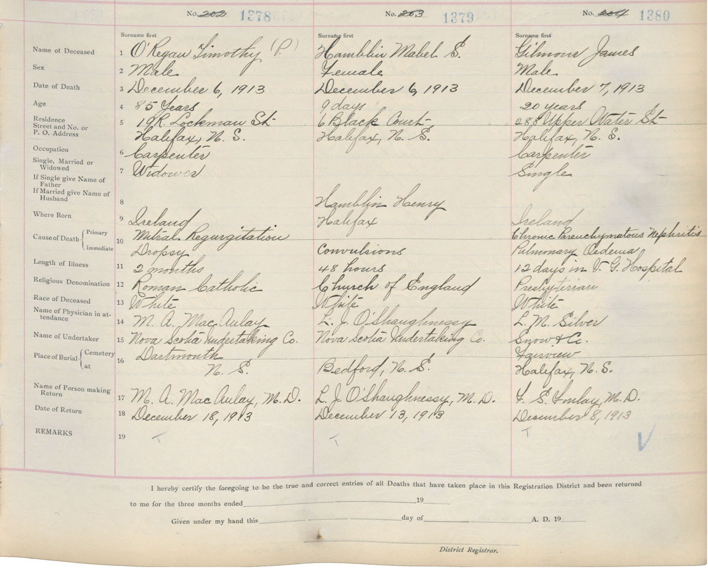 Death Registration: Year: 1913 book: 20 page: 230 number: 1380