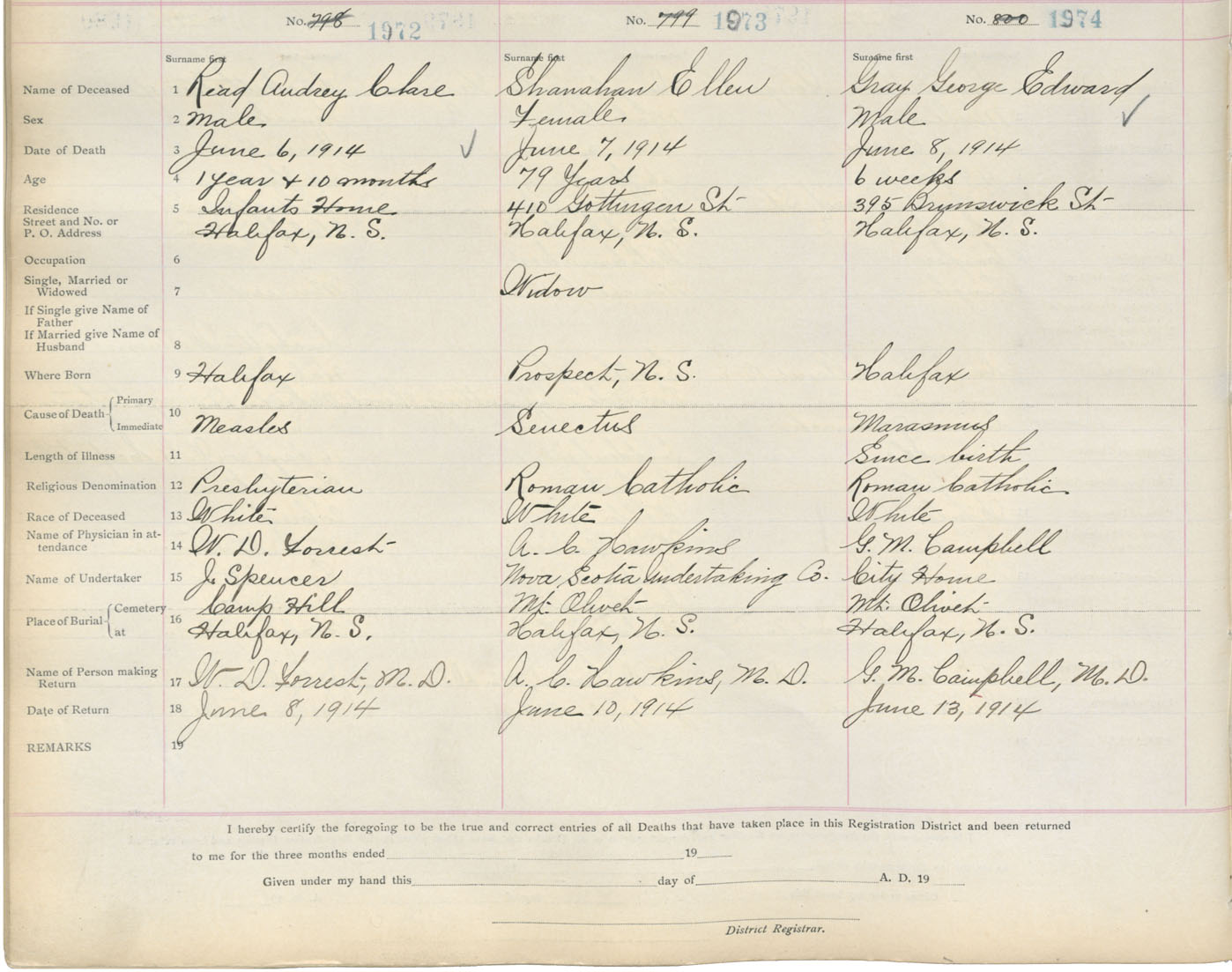 Death Registration: Year: 1914 book: 20 page: 329 number: 1974