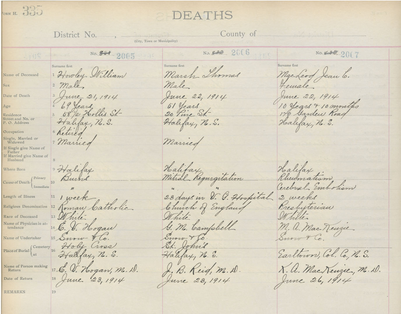 Death Registration: Year: 1914 book: 20 page: 335 number: 2007