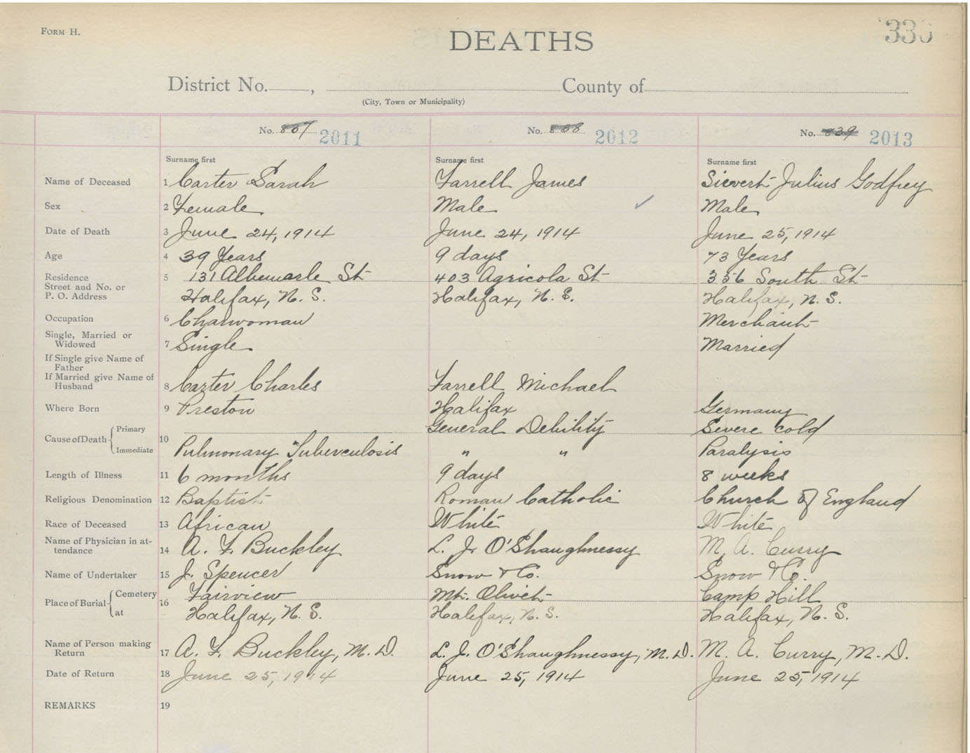 Death Registration: Year: 1914 book: 20 page: 336 number: 2013