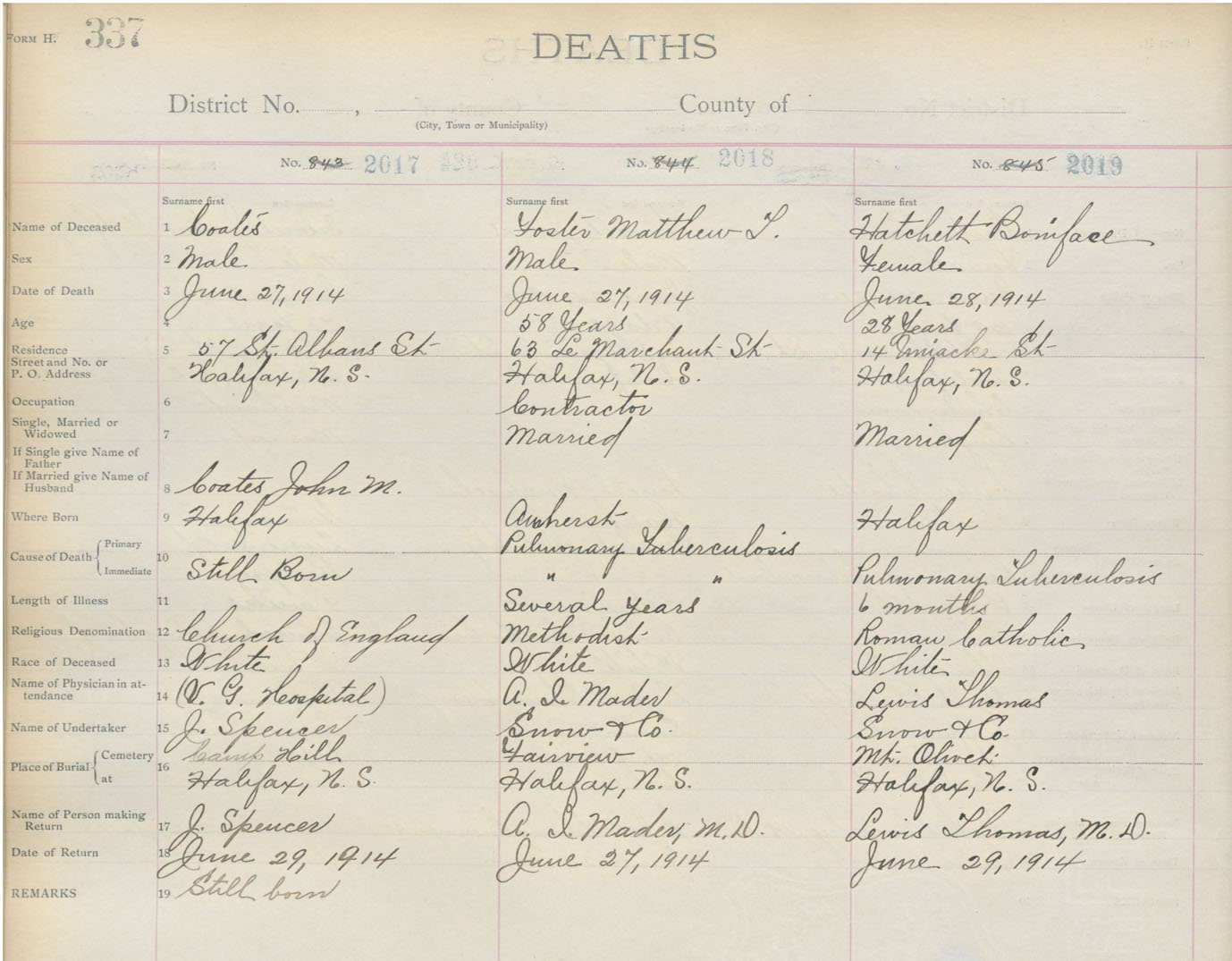 Death Registration: Year: 1914 book: 20 page: 337 number: 2019