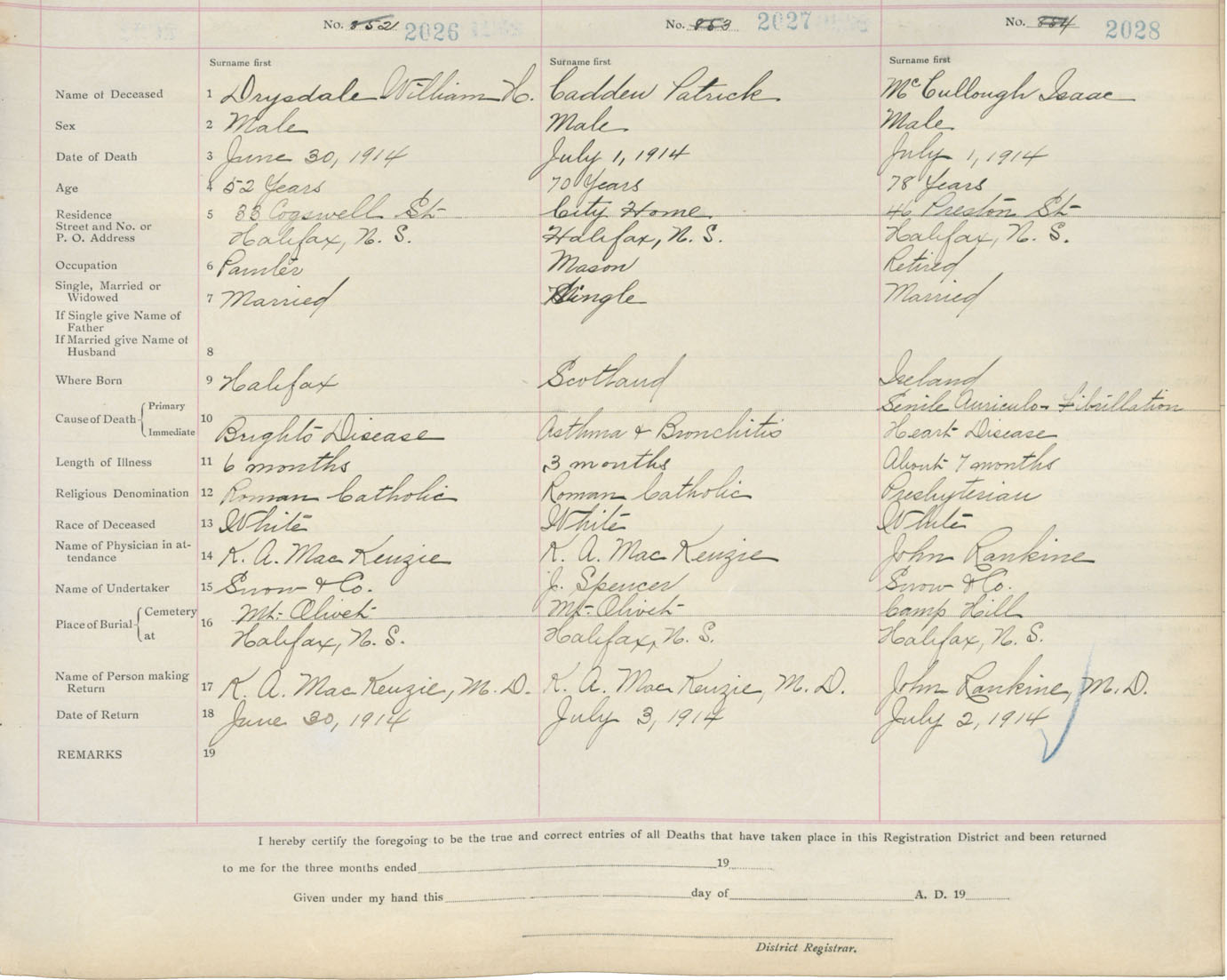 Death Registration: Year: 1914 book: 20 page: 338 number: 2028