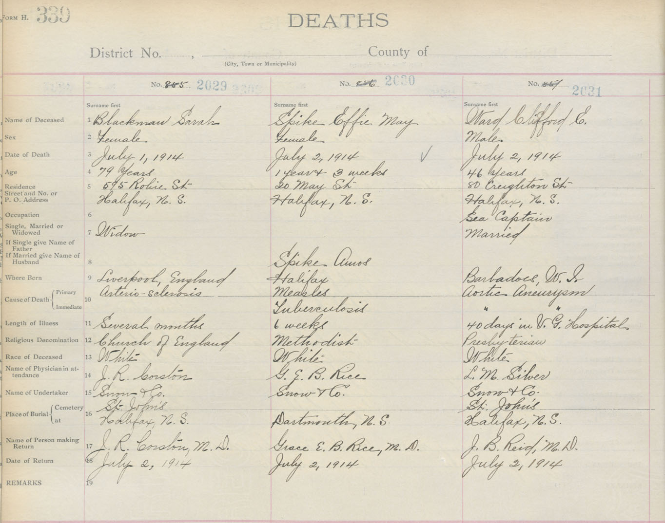 Death Registration: Year: 1914 book: 20 page: 339 number: 2031