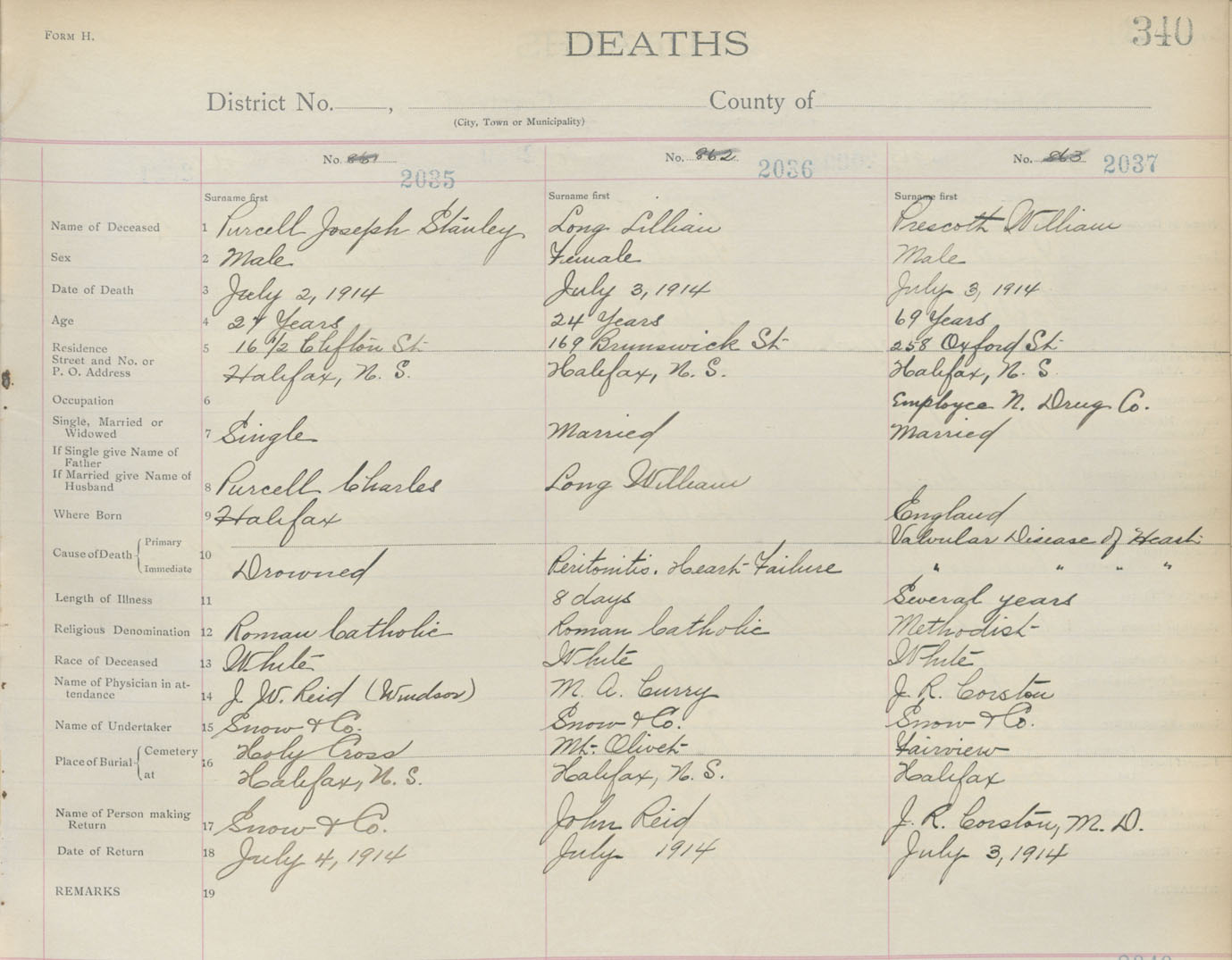 Death Registration: Year: 1914 book: 20 page: 340 number: 2037
