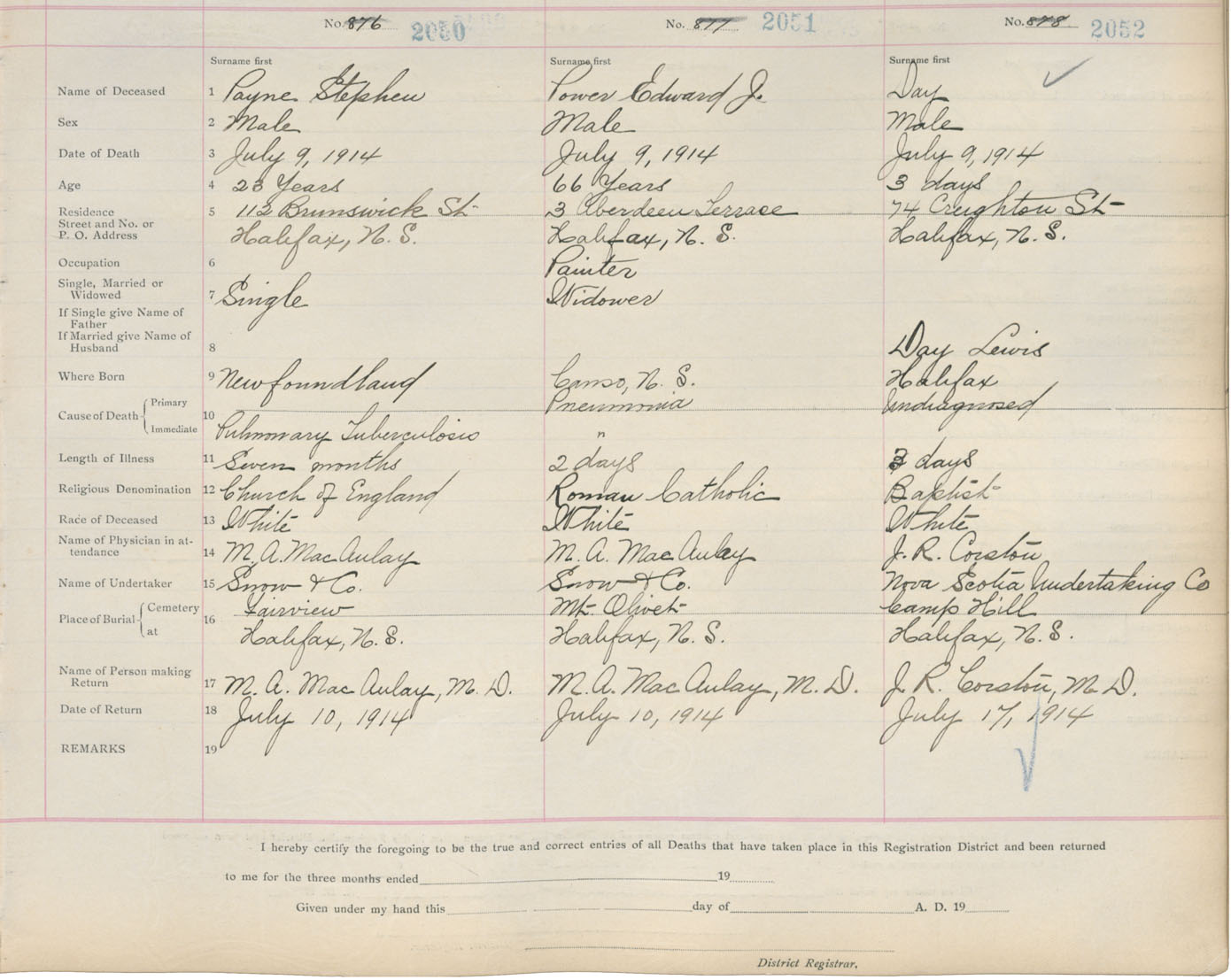 Death Registration: Year: 1914 book: 20 page: 342 number: 2052
