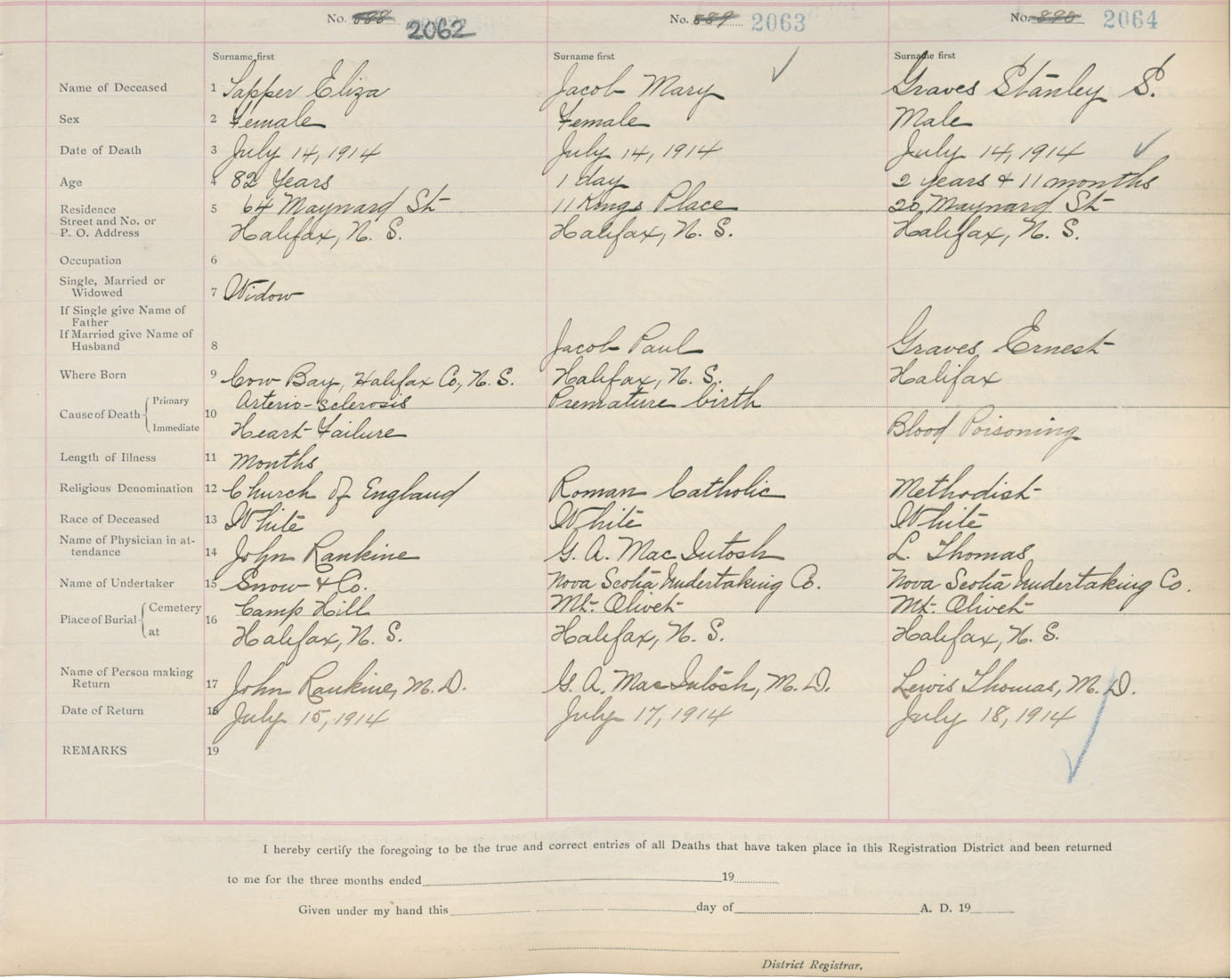 Death Registration: Year: 1914 book: 20 page: 344 number: 2064