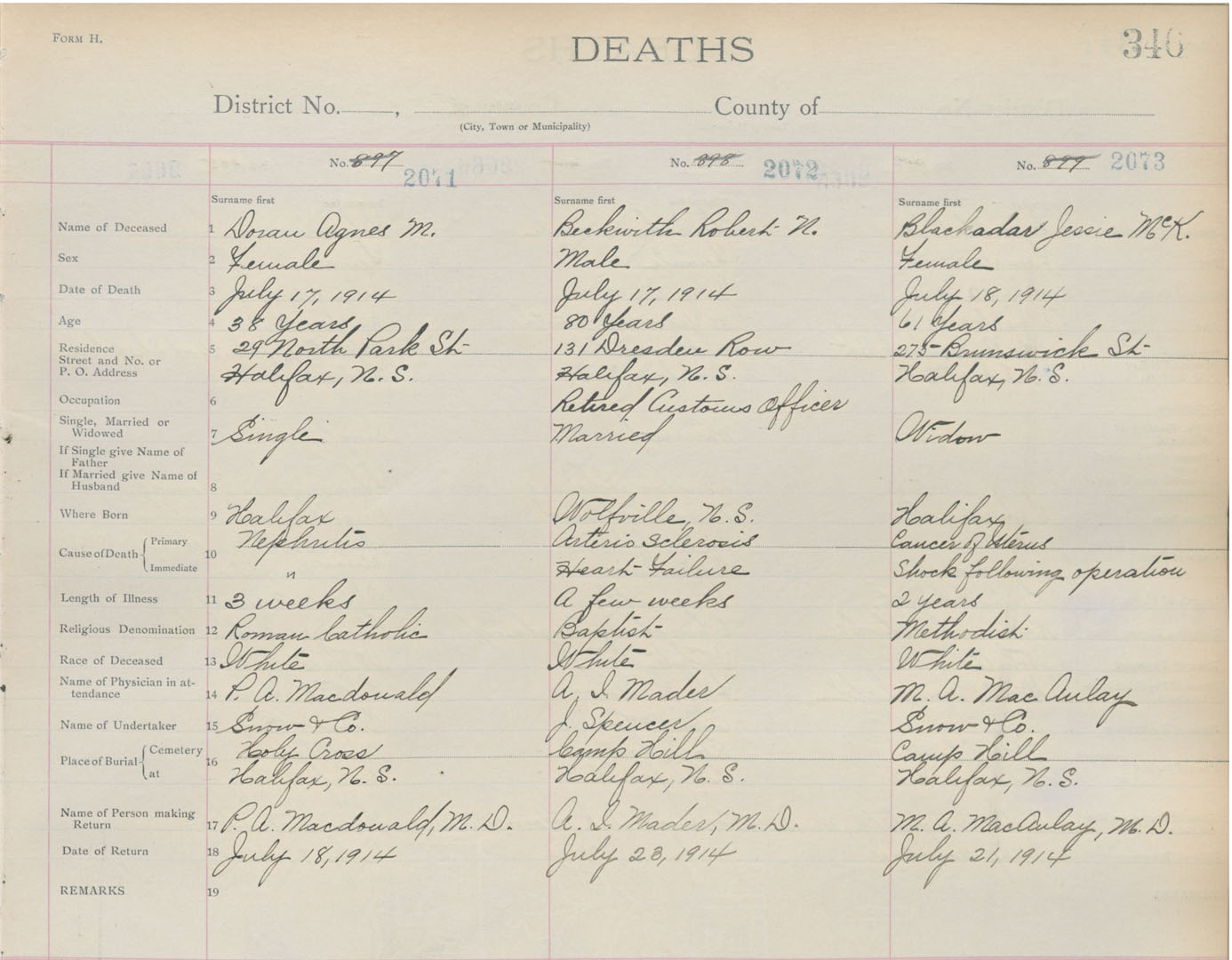 Death Registration: Year: 1914 book: 20 page: 346 number: 2073