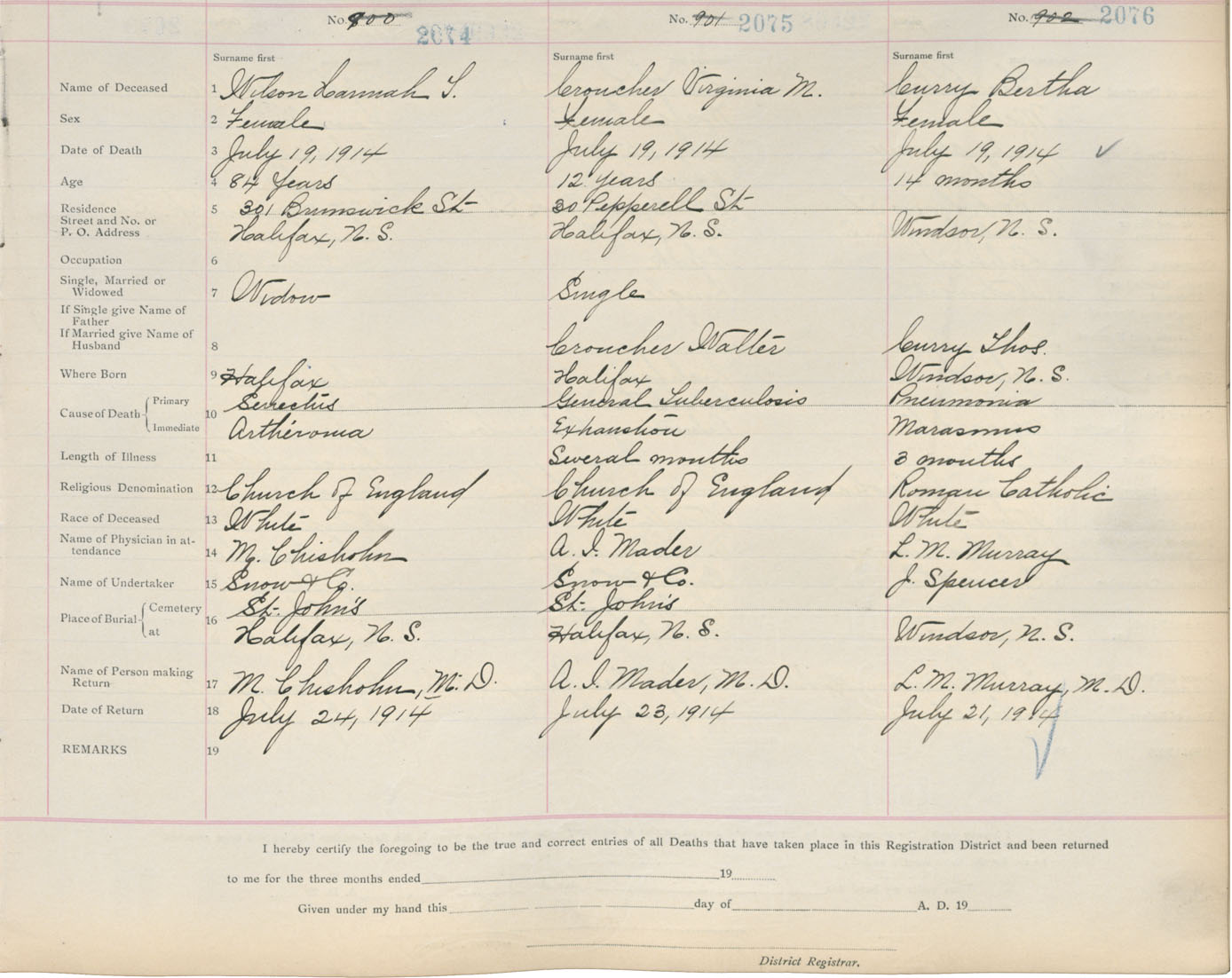 Death Registration: Year: 1914 book: 20 page: 346 number: 2076