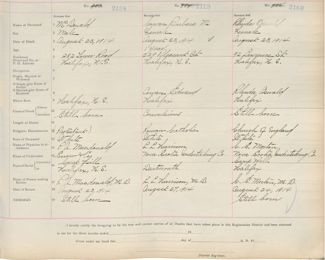 Death Registration: Year: 1914 book: 20 page: 360 number: 2158