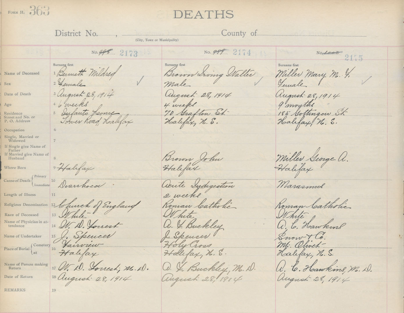 Death Registration: Year: 1914 book: 20 page: 363 number: 2173