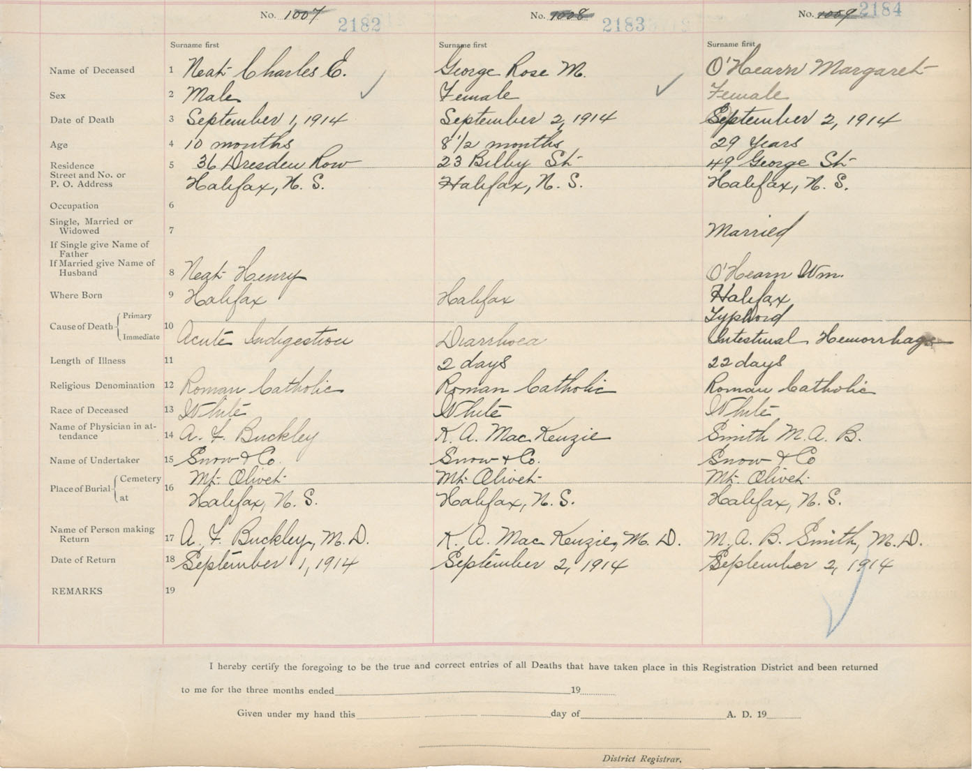 Death Registration: Year: 1914 book: 20 page: 364 number: 2182