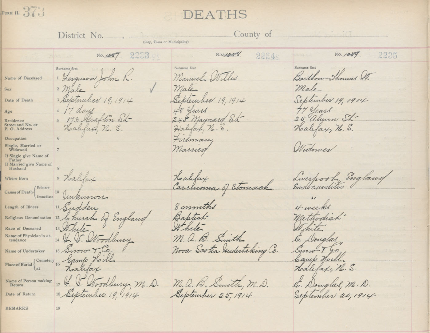 Death Registration: Year: 1914 book: 20 page: 373 number: 2233