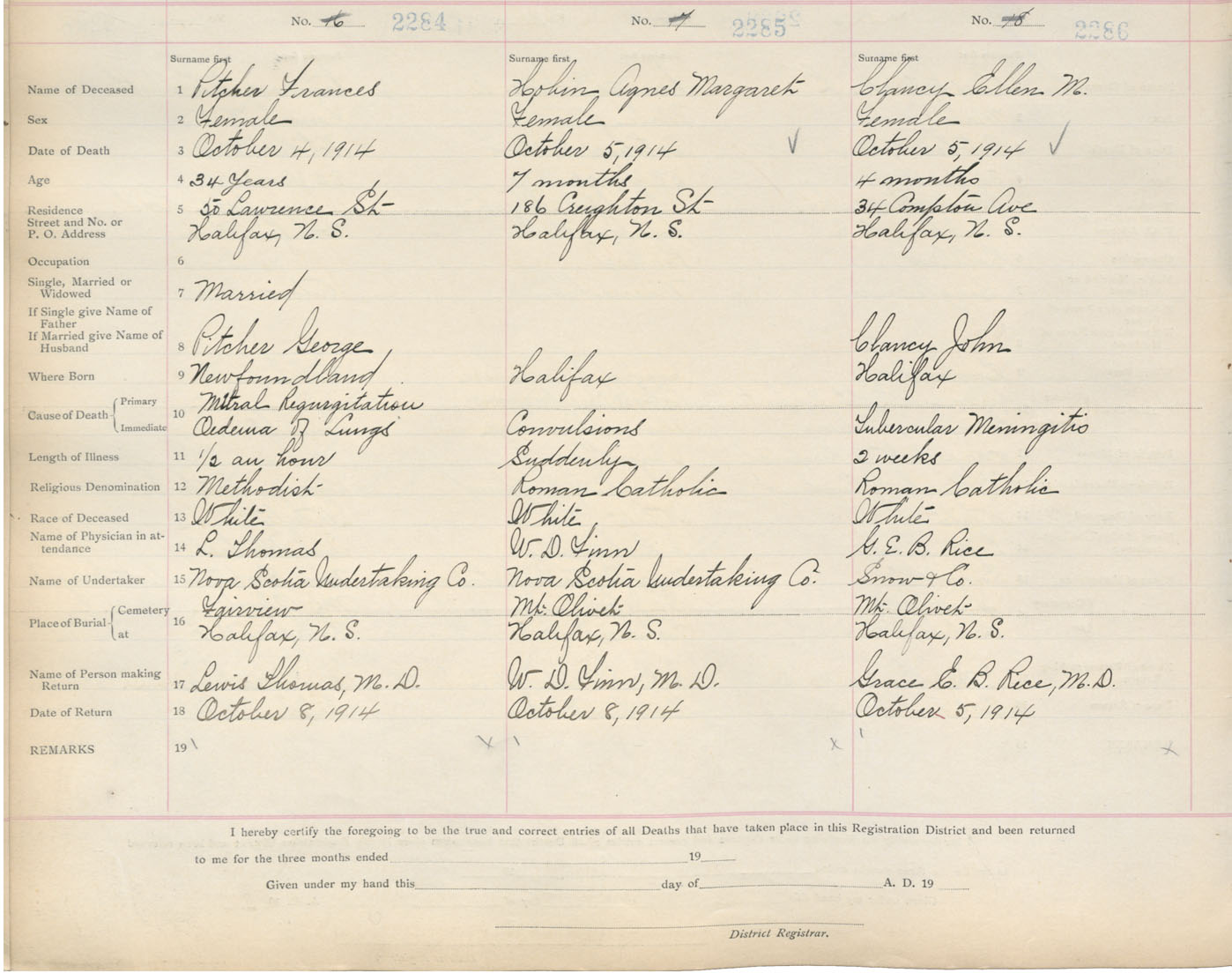 Death Registration: Year: 1914 book: 20 page: 381 number: 2284