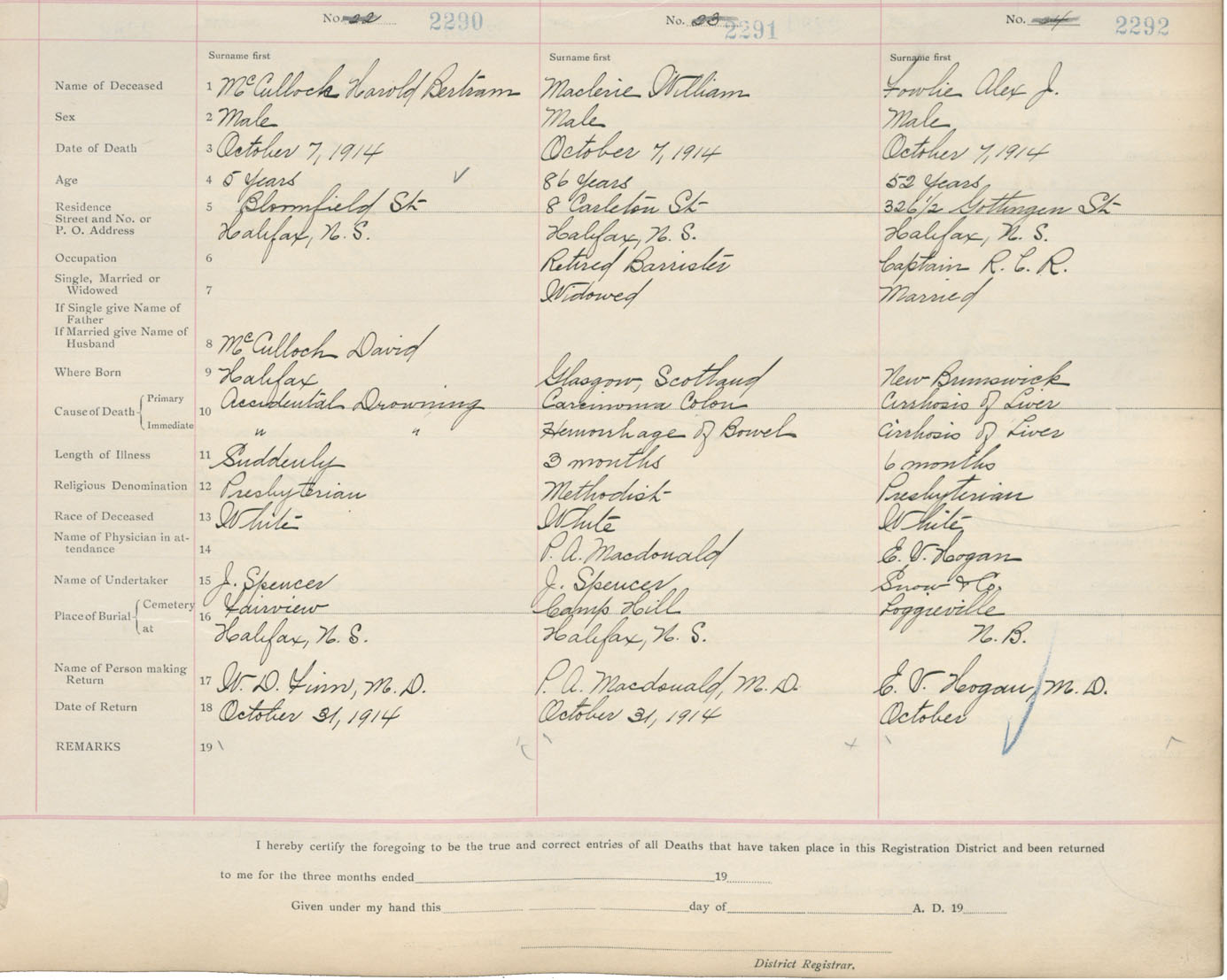 Death Registration: Year: 1914 book: 20 page: 382 number: 2290