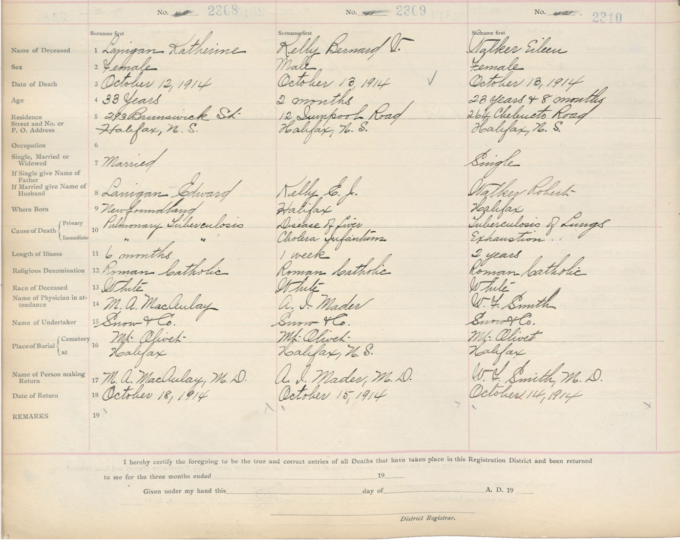 Death Registration: Year: 1914 book: 20 page: 385 number: 2308