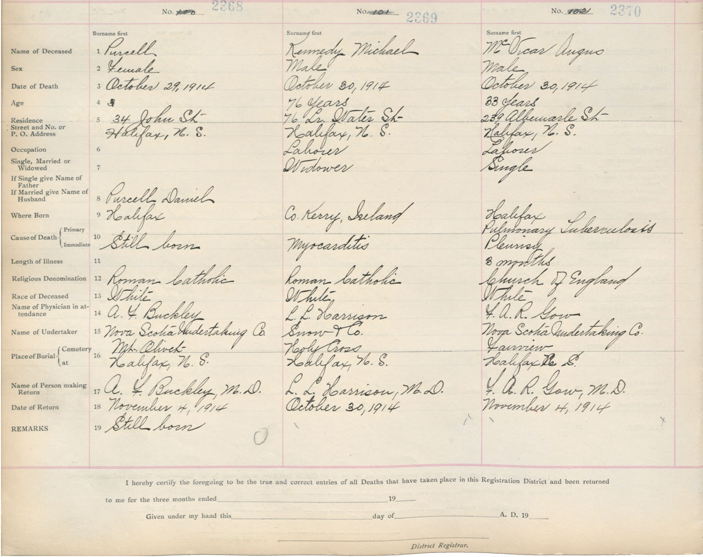 Female Death Registration: Year: 1914 book: 20 page: 395 number: 2368