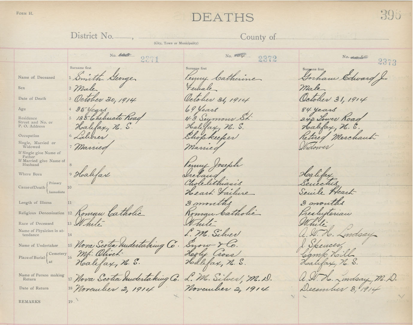 Death Registration: Year: 1914 book: 20 page: 396 number: 2371