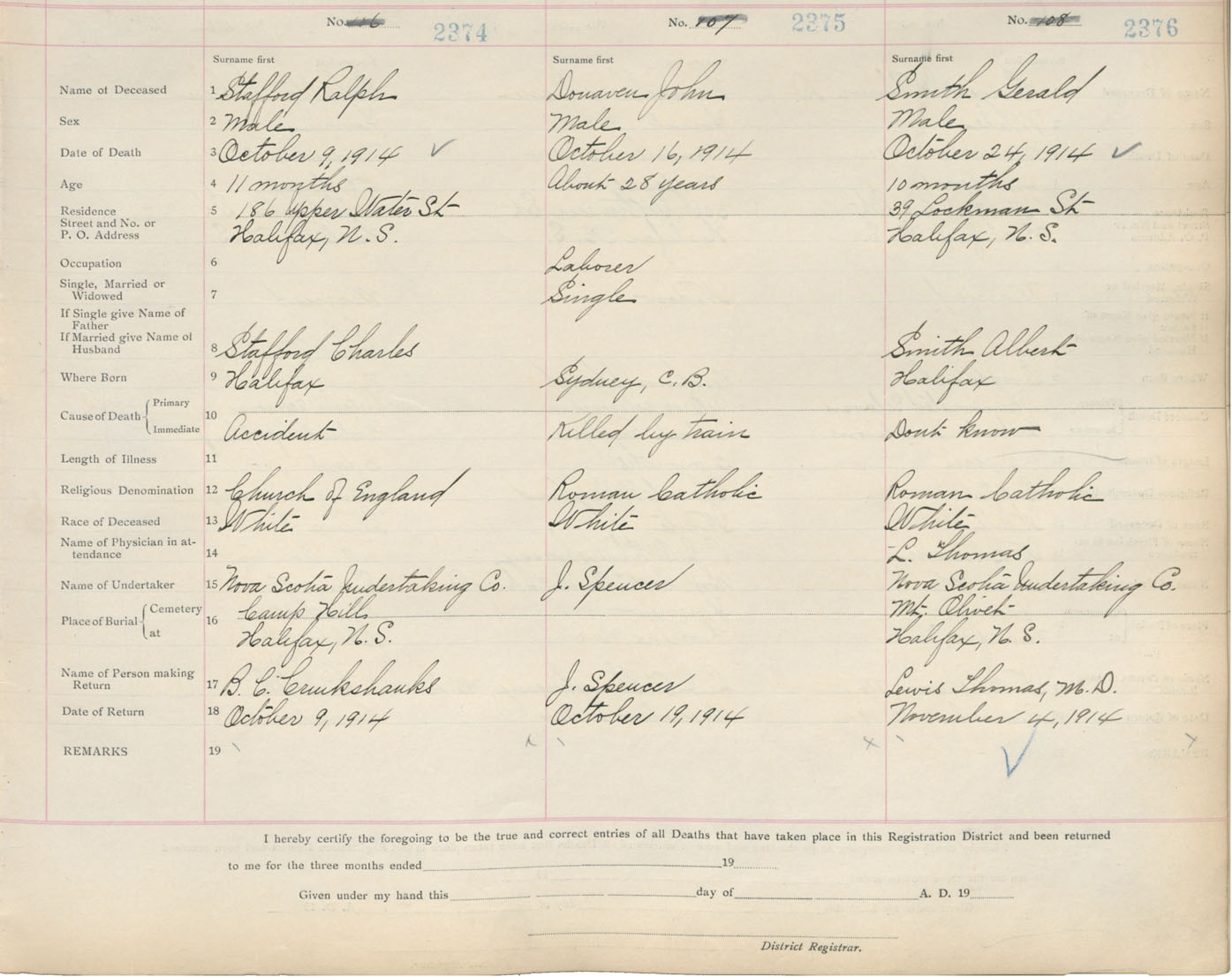 Death Registration: Year: 1914 book: 20 page: 396 number: 2374